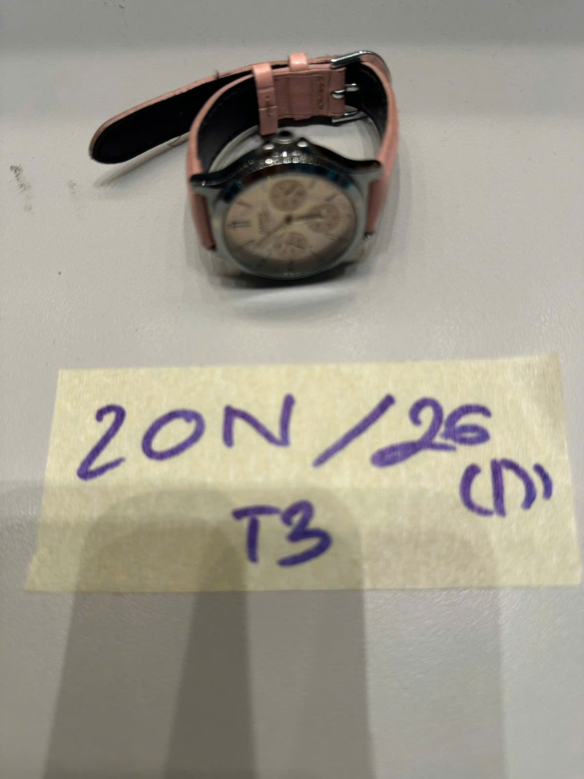 Ngày tiếp nhận: 15/01/2026 Mã hồ sơ: 20N2026D-T3 Mô tả: 01 đồng hồ mặt tròn dây đeo màu hồng hiệu CASIO. |