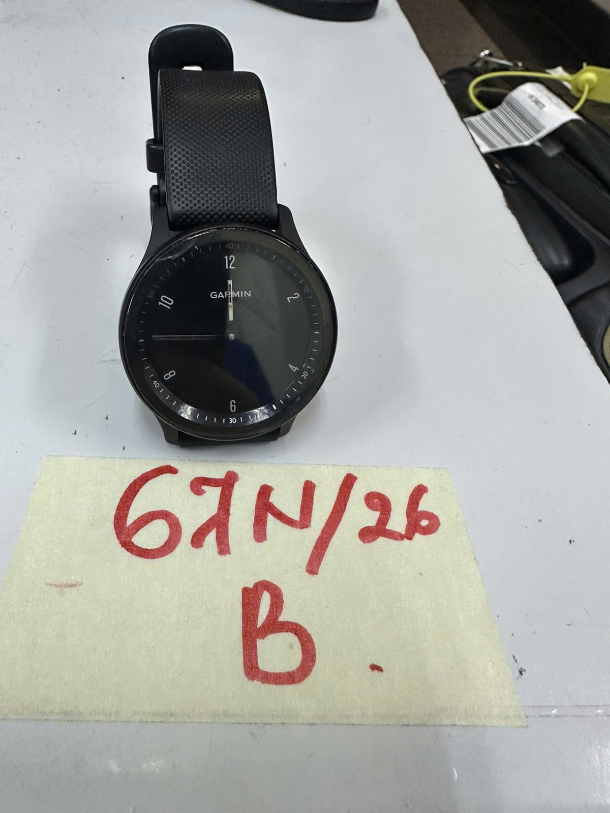 Ngày tiếp nhận: 15/01/2026 Mã hồ sơ: 67N2026B Mô tả: 01 đồng hồ bằng nhựa màu đen, mặt tròn có chữ GARMIN. |
