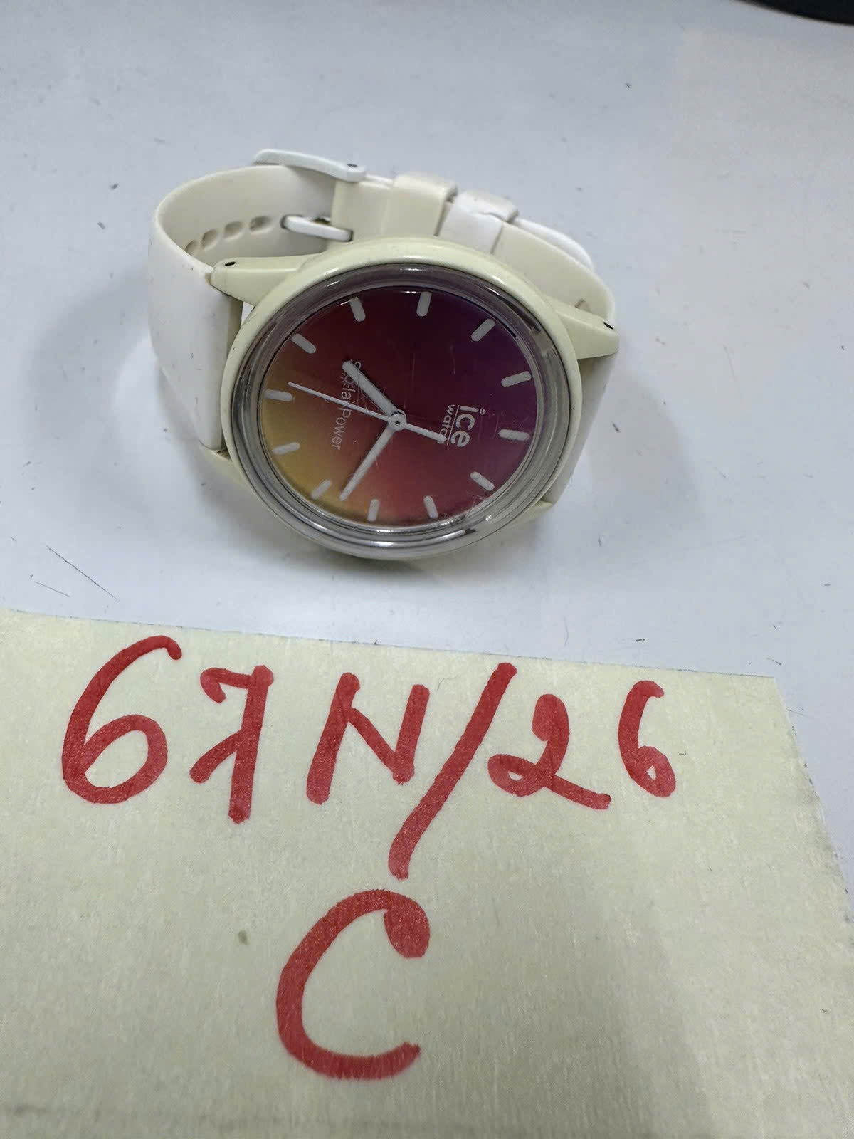 Ngày tiếp nhận: 15/01/2026 Mã hồ sơ: 67N2026C Mô tả: 01 đồng hồ bằng nhựa màu trắng, mặt tròn có chữ SWATCH. |