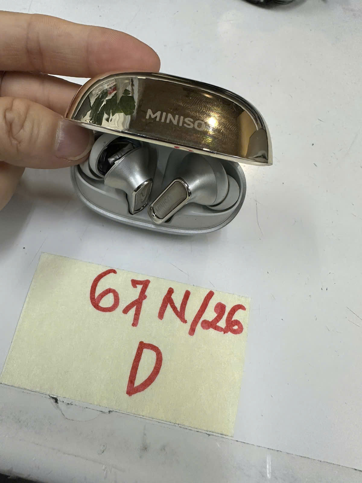 Ngày tiếp nhận: 15/01/2026 Mã hồ sơ: 67N2026D Mô tả: 01 bộ tai nghe không dây màu xám có chữ MINISO. |