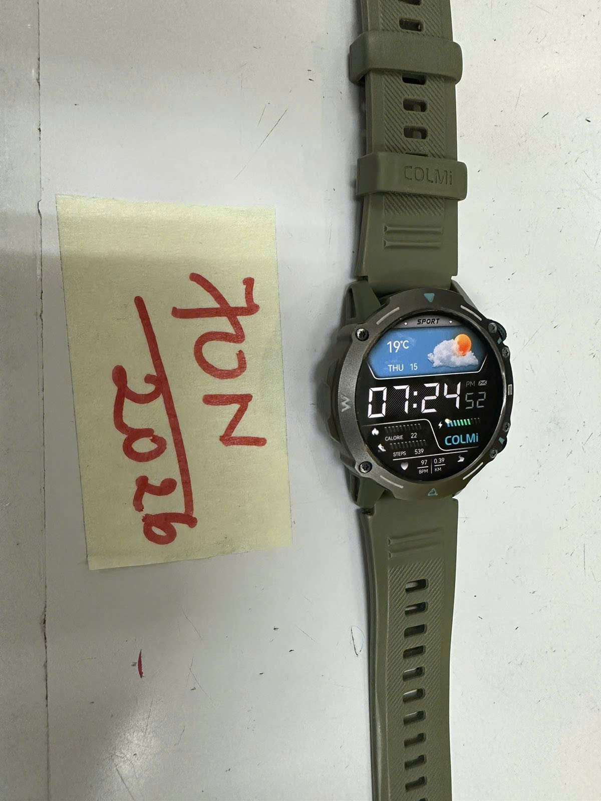 Ngày tiếp nhận: 15/01/2026 Mã hồ sơ: 70N2026 Mô tả: 01 đồng hồ mặt tròn màu xám có chữ COLMI, dây nhựa màu xanh lá. |