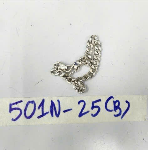 Ngày tiếp nhận: 16/03/2025 Mã hồ sơ: 501N2025B Mô tả: 01 sợi dây đeo tay màu bạc. |