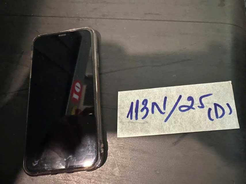 Ngày tiếp nhận: 17/01/2025 Mã hồ sơ: 113N2025D Mô tả: 01 điện thoại Iphone màu đen, ốp lưng trong suốt. |