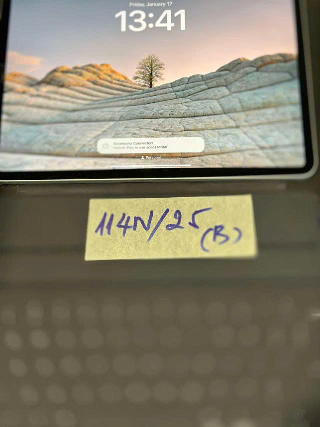 Ngày tiếp nhận: 17/01/2025 Mã hồ sơ: 114N2025B Mô tả: 01 máy tính bảng "TPAD" màu bạc số series: DMPYF73VKD6K cùng ốp lưng bản phim màu đen. |