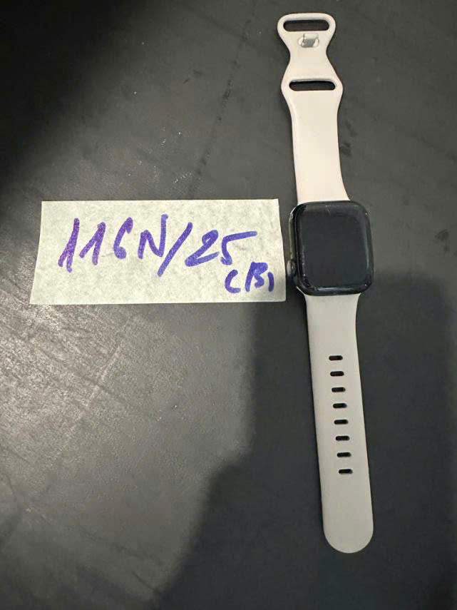 Ngày tiếp nhận: 17/01/2025 Mã hồ sơ: 116N2025B Mô tả: 01 đồng hồ Apple màu đen, dây đeo cao su màu nâu nhạt. |