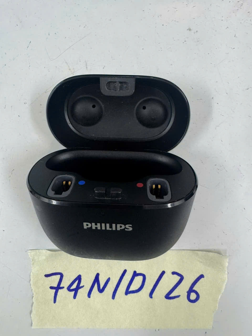Ngày tiếp nhận: 16/01/2026 Mã hồ sơ: 74N2026D Mô tả: 01 hộp sạc tai nghe không dây, có chữ Philips, không có tai nghe bên trong. |