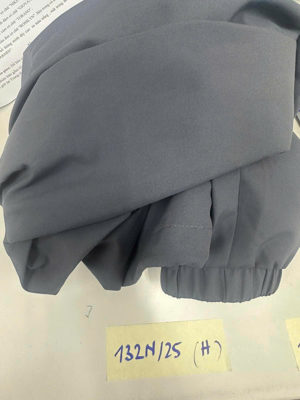 Ngày tiếp nhận: 18/01/2025 Mã hồ sơ: 132N2025H Mô tả: 01 Áo khoác màu xám có chữ "TORANO". |