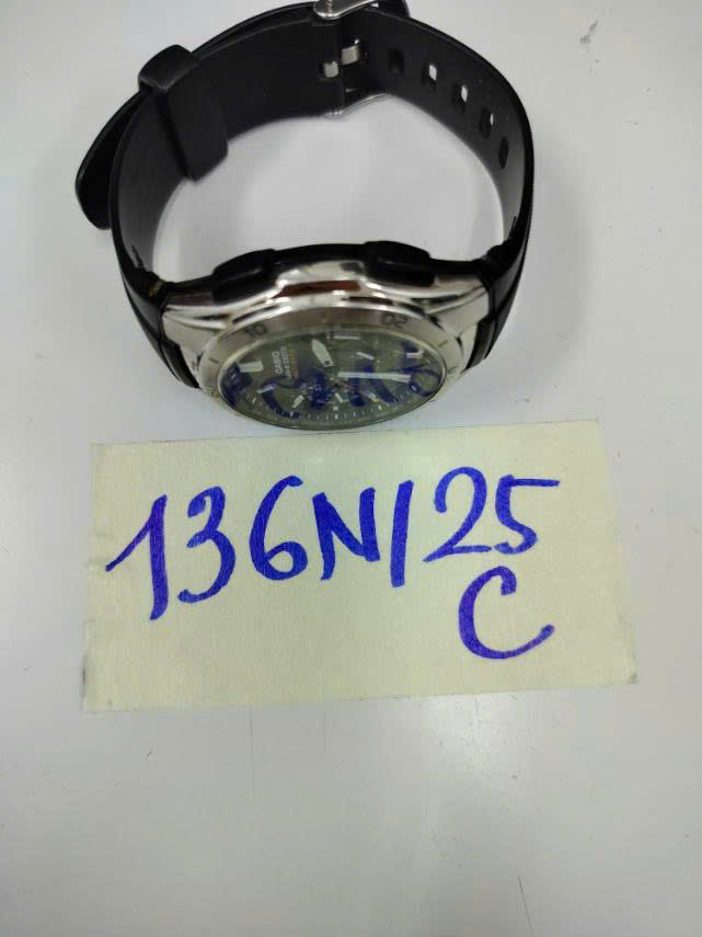 Ngày tiếp nhận: 19/01/2025 Mã hồ sơ: 136N2025C Mô tả: 01 Đồng hồ dây nhựa màu đen, có chữ " CASIO". |