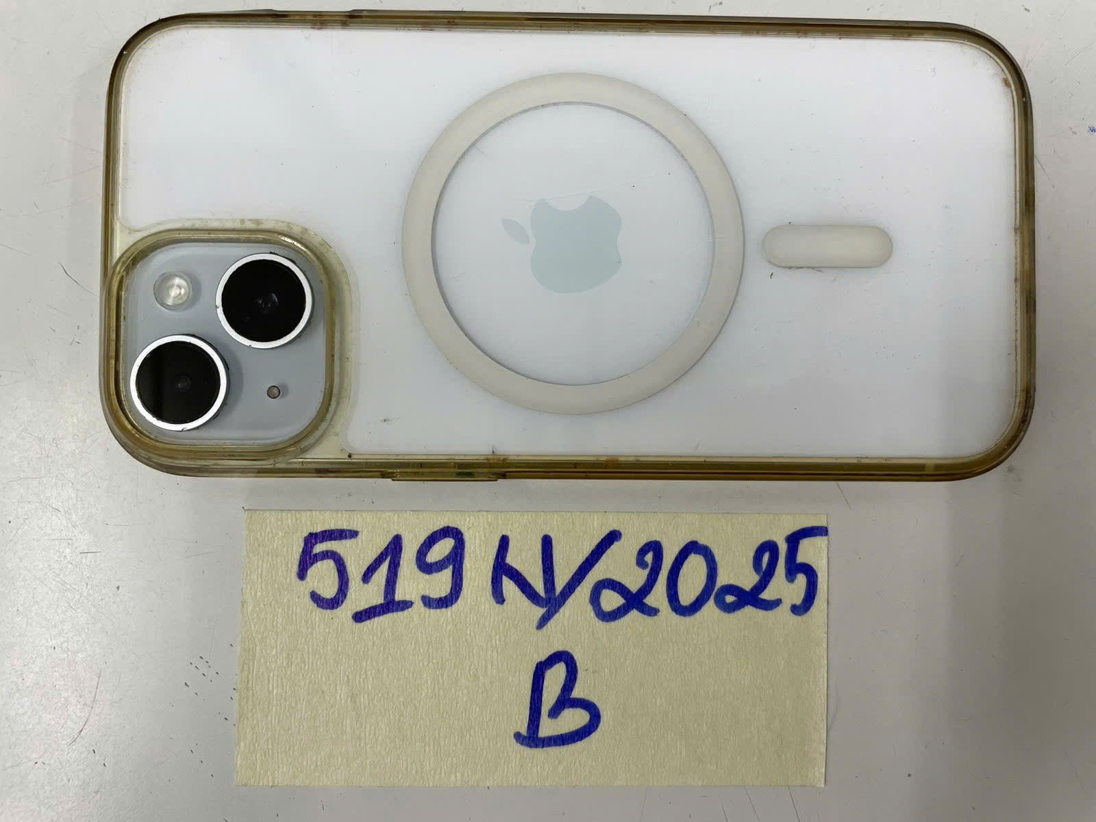 Ngày tiếp nhận: 21/03/2025 Mã hồ sơ: 519N2025B Mô tả: 01 điện thoại Iphone màu xanh nhạt, ốp lưng nhựa trong. |