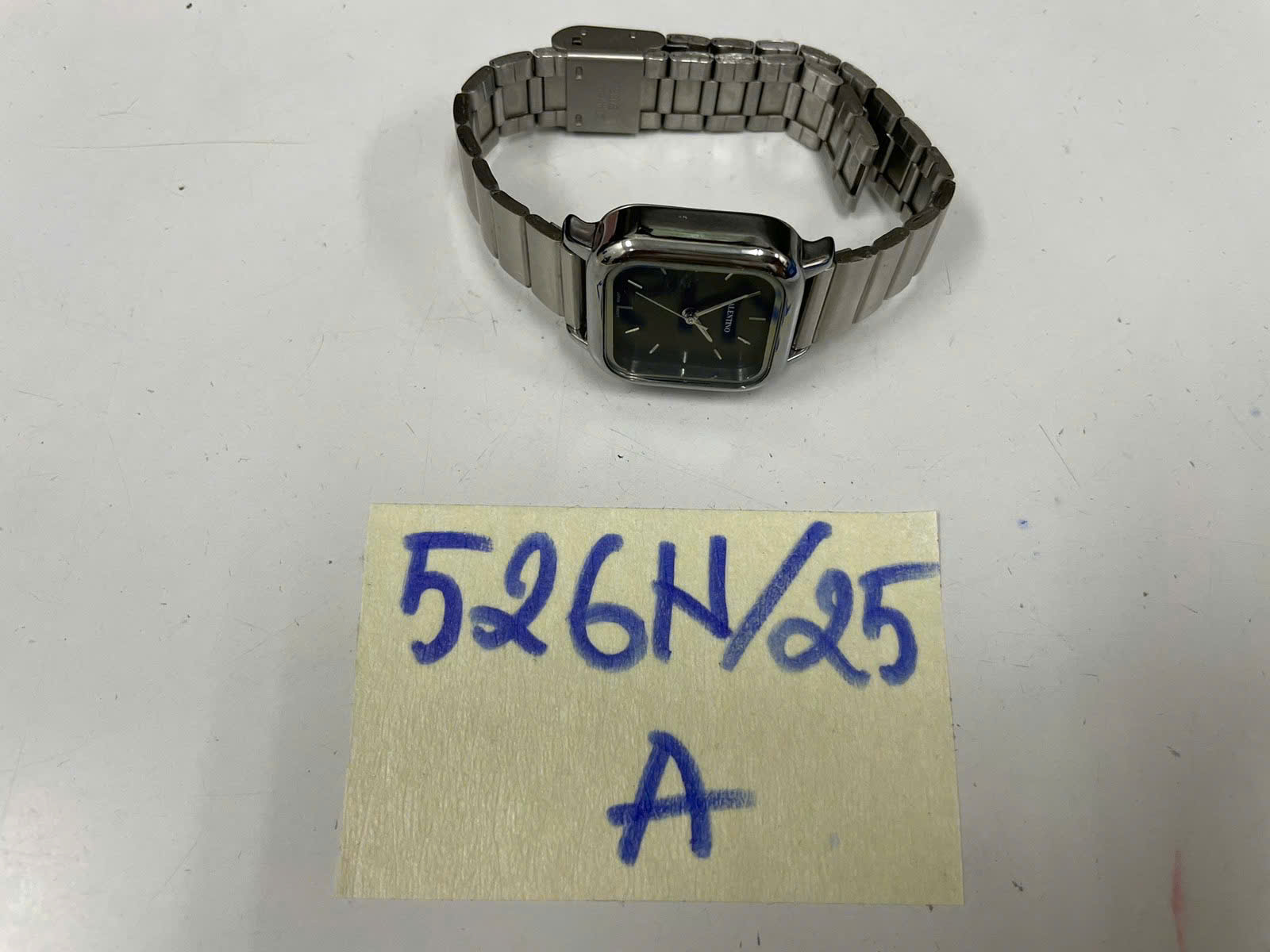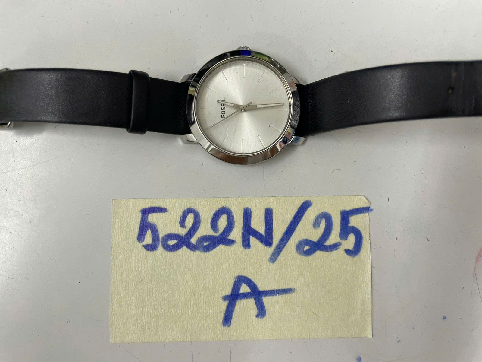 Ngày tiếp nhận: 21/03/2025 Mã hồ sơ: 522N2025A Mô tả: 01 đồng hồ màu trắng có chữ "Fossil", dây da màu đen. |