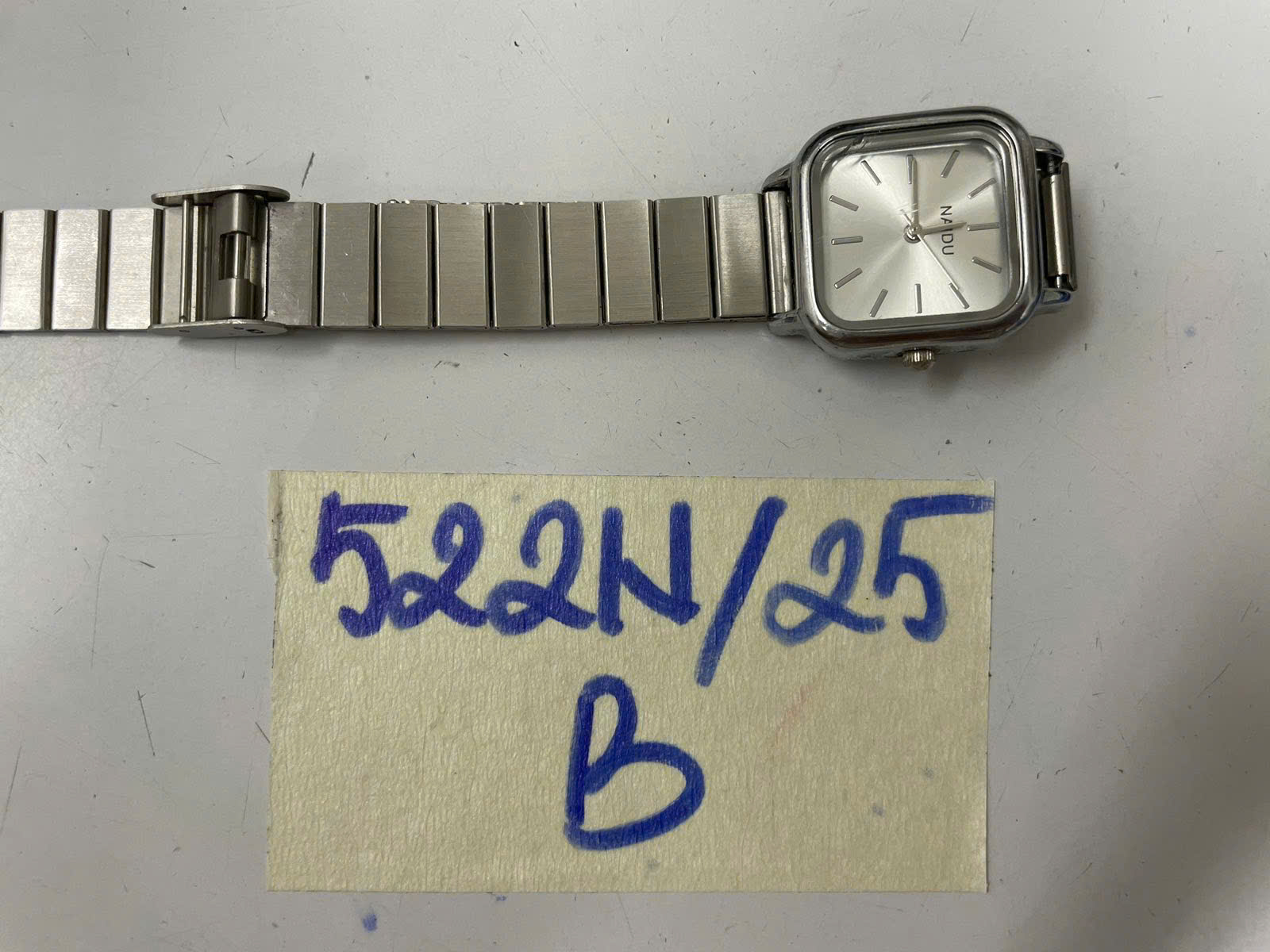Ngày tiếp nhận: 21/03/2025 Mã hồ sơ: 522N2025B Mô tả: 01 đồng hồ màu trắng có chữ 'Naidu", dây kim loại màu trắng. |