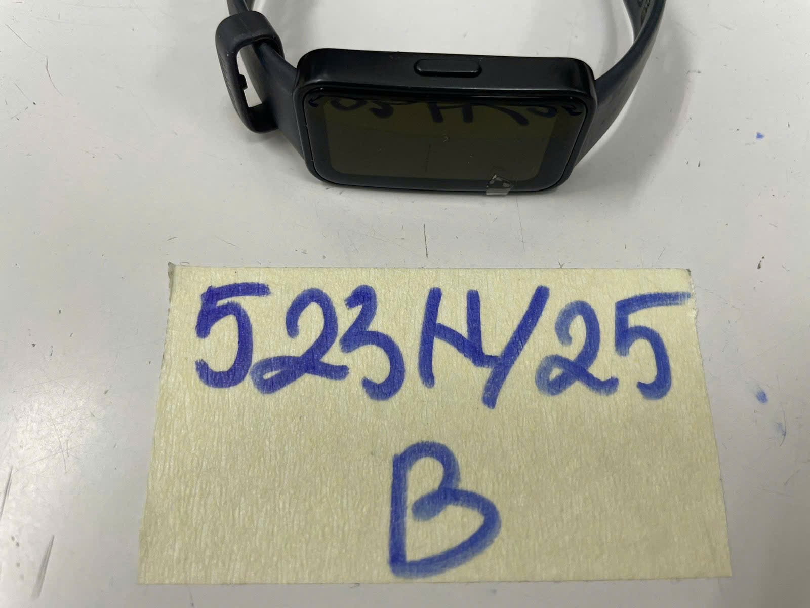 Ngày tiếp nhận: 21/03/2025 Mã hồ sơ: 523N2025B Mô tả: 01 đồng hồ điện tử dây cao su màu đen, có chữ "HUA WEI". |