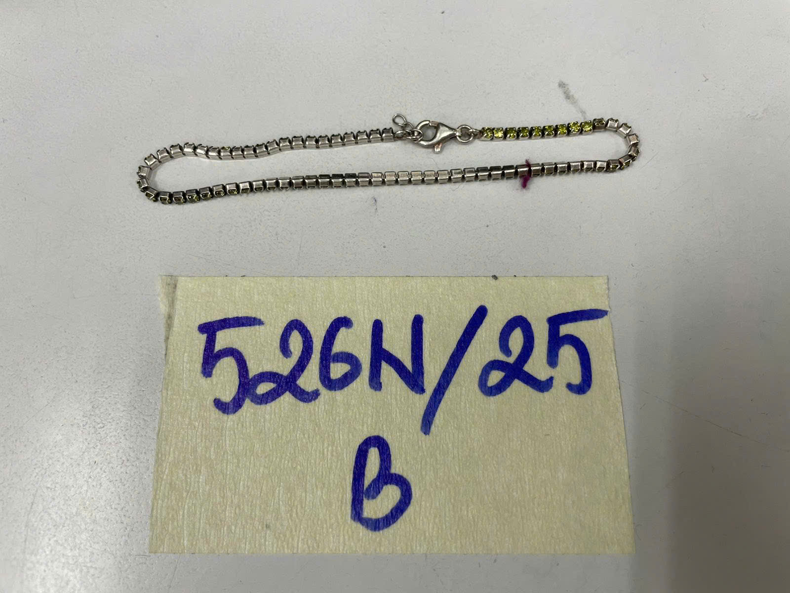 Ngày tiếp nhận: 21/03/2025 Mã hồ sơ: 526N2025B Mô tả: 01 vòng tay kim loại màu trắng có đà màu vàng. |