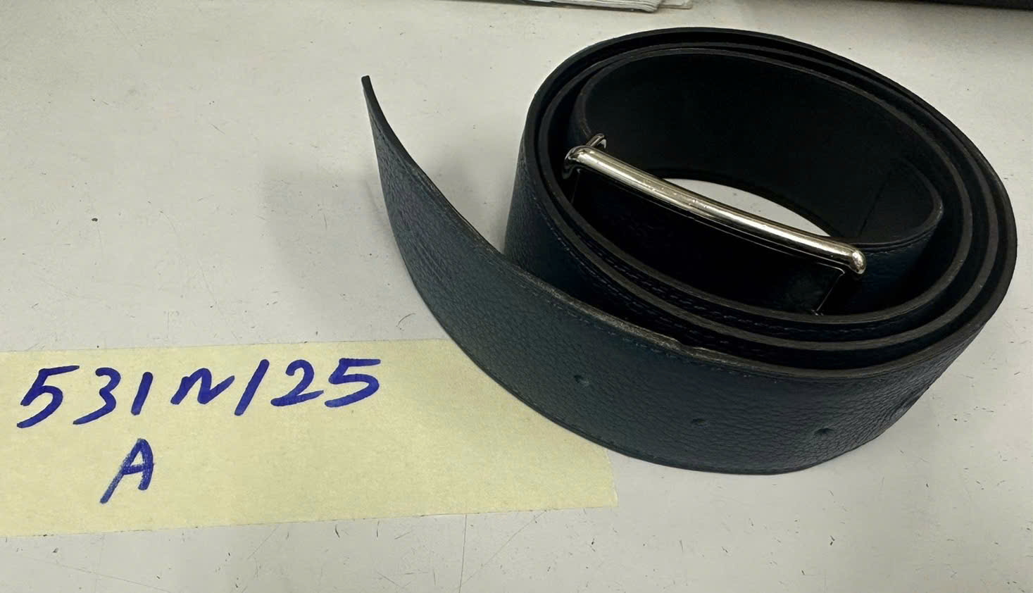 Ngày tiếp nhận: 21/03/2025 Mã hồ sơ: 531N2025A Mô tả: 01 thắt lưng da màu xanh chữ Hermes. |
