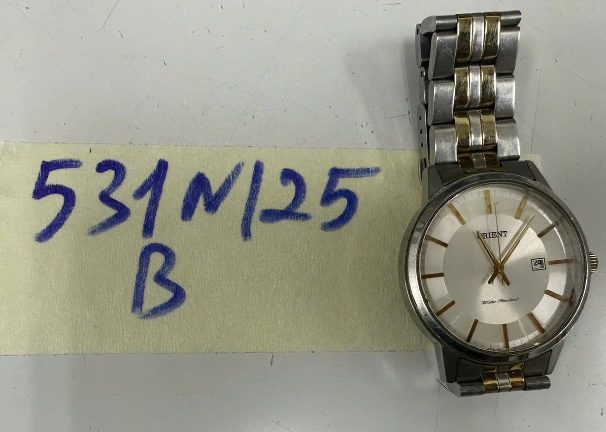 Ngày tiếp nhận: 21/03/2025 Mã hồ sơ: 531N2025B Mô tả: 01 đồng hồ kim loại có chữ Orient. |