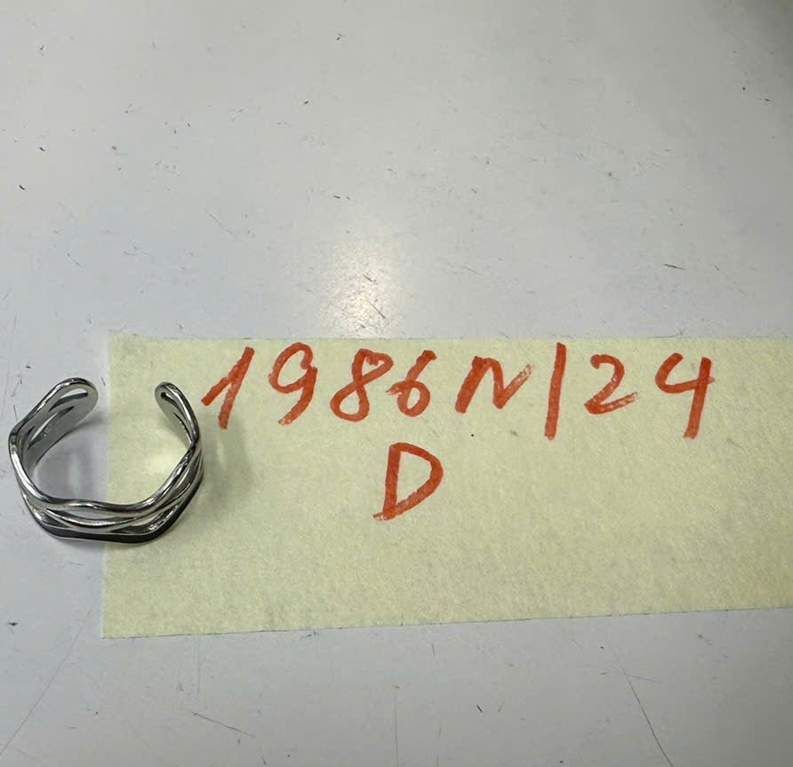Ngày tiếp nhận: 19/11/2024 Mã hồ sơ: 1986N2024D Mô tả: 01 nhẫn kim loại màu bạc viền đen không rõ hiệu. |