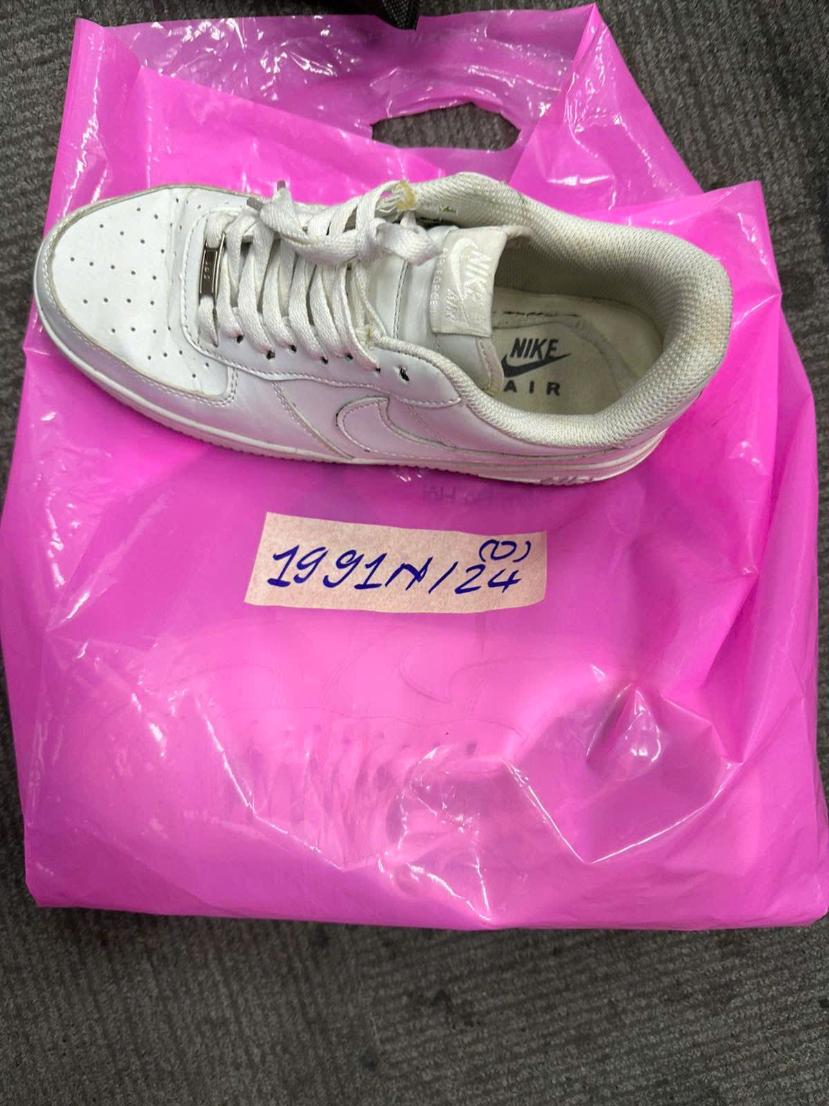 Ngày tiếp nhận: 19/11/2024 Mã hồ sơ: 1991N2024D Mô tả: 01 túi màu hồng có 01 đôi giày màu trắng chữ NIKE. |