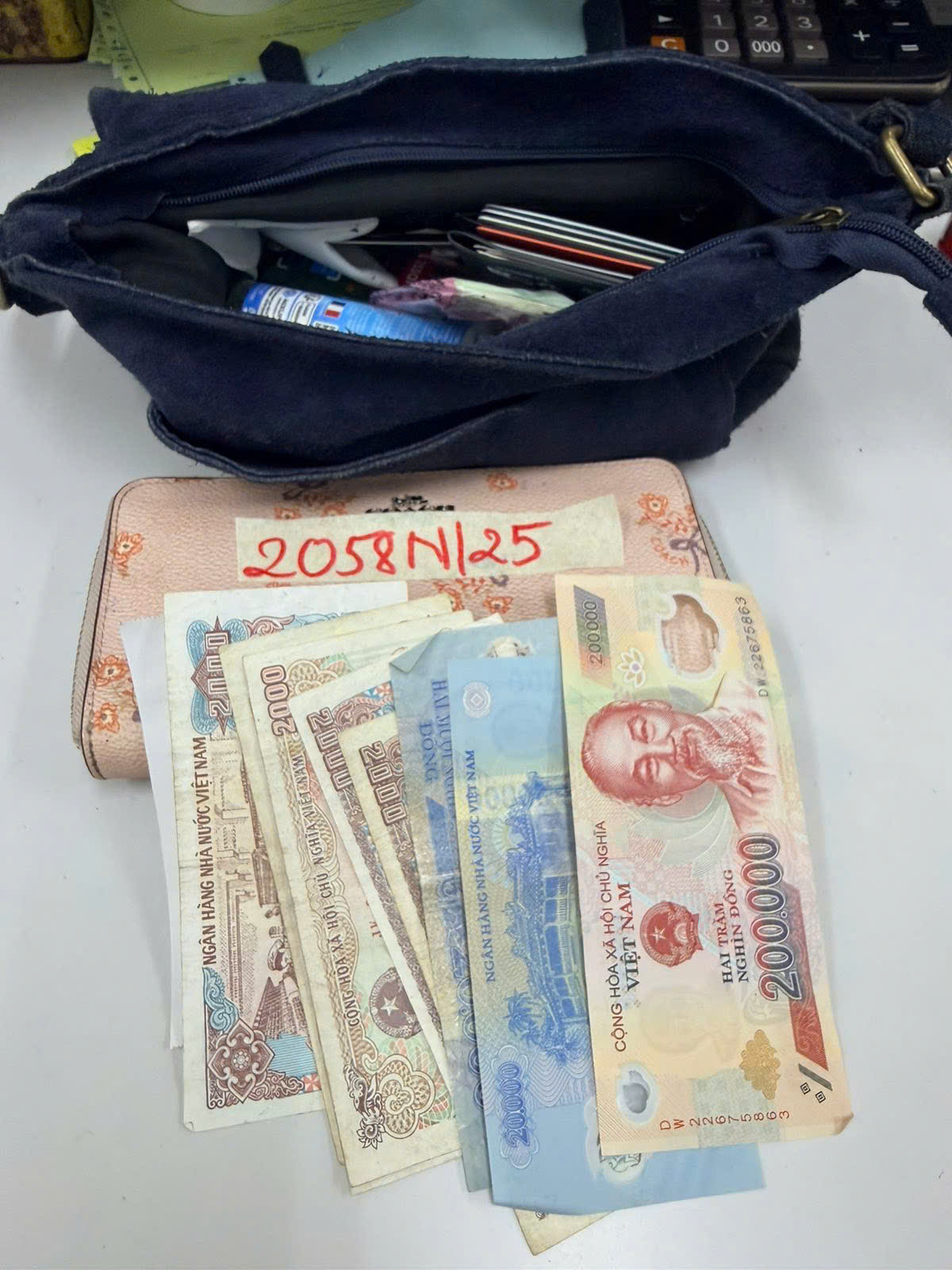 Ngày tiếp nhận: 24/11/2025 Mã hồ sơ: 2058N2025 Mô tả: 01 túi đeo bằng vải màu xanh than chứa nhiều thẻ nhựa mang tên Fort Morgane, 252.000 đồng và đồ dùng cá nhân đã qua sử dụng. |