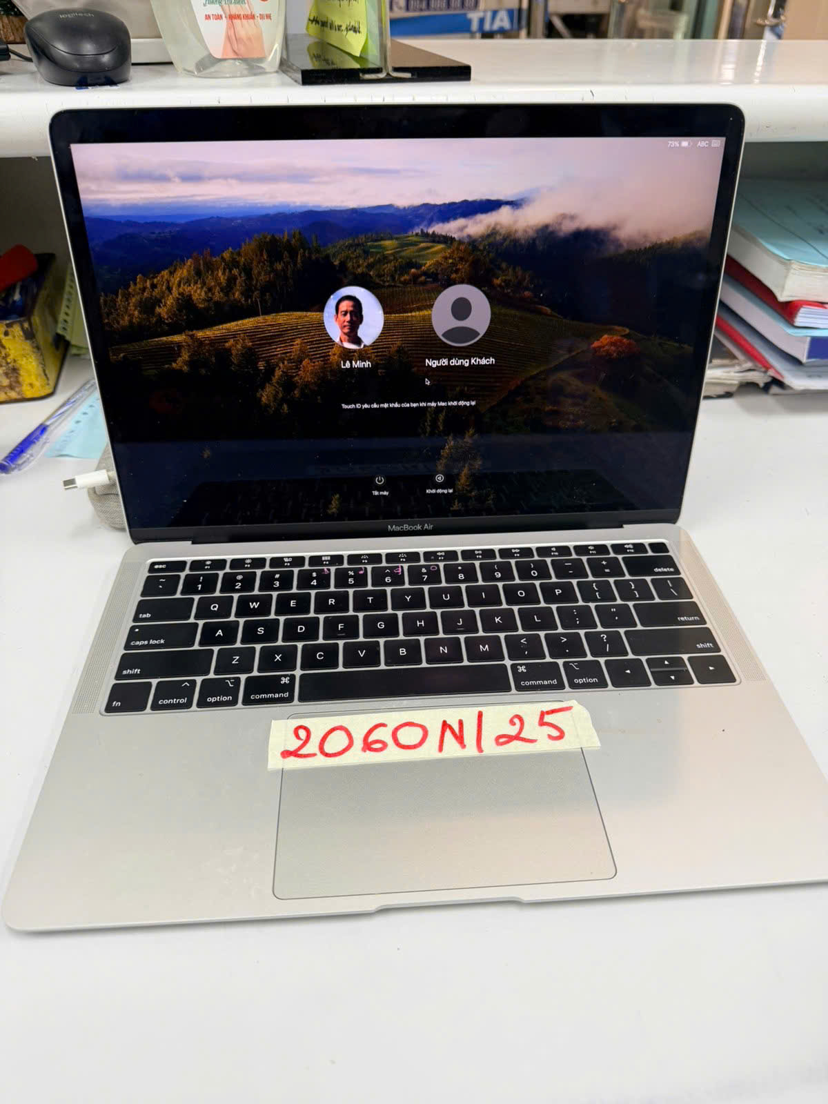 Ngày tiếp nhận: 24/11/2025 Mã hồ sơ: 2060N2025 Mô tả: 01 túi vải màu xám bên trong chứa 1 Mac Book Air có số serial: FVFYV1QQJK7C và sạc. |
