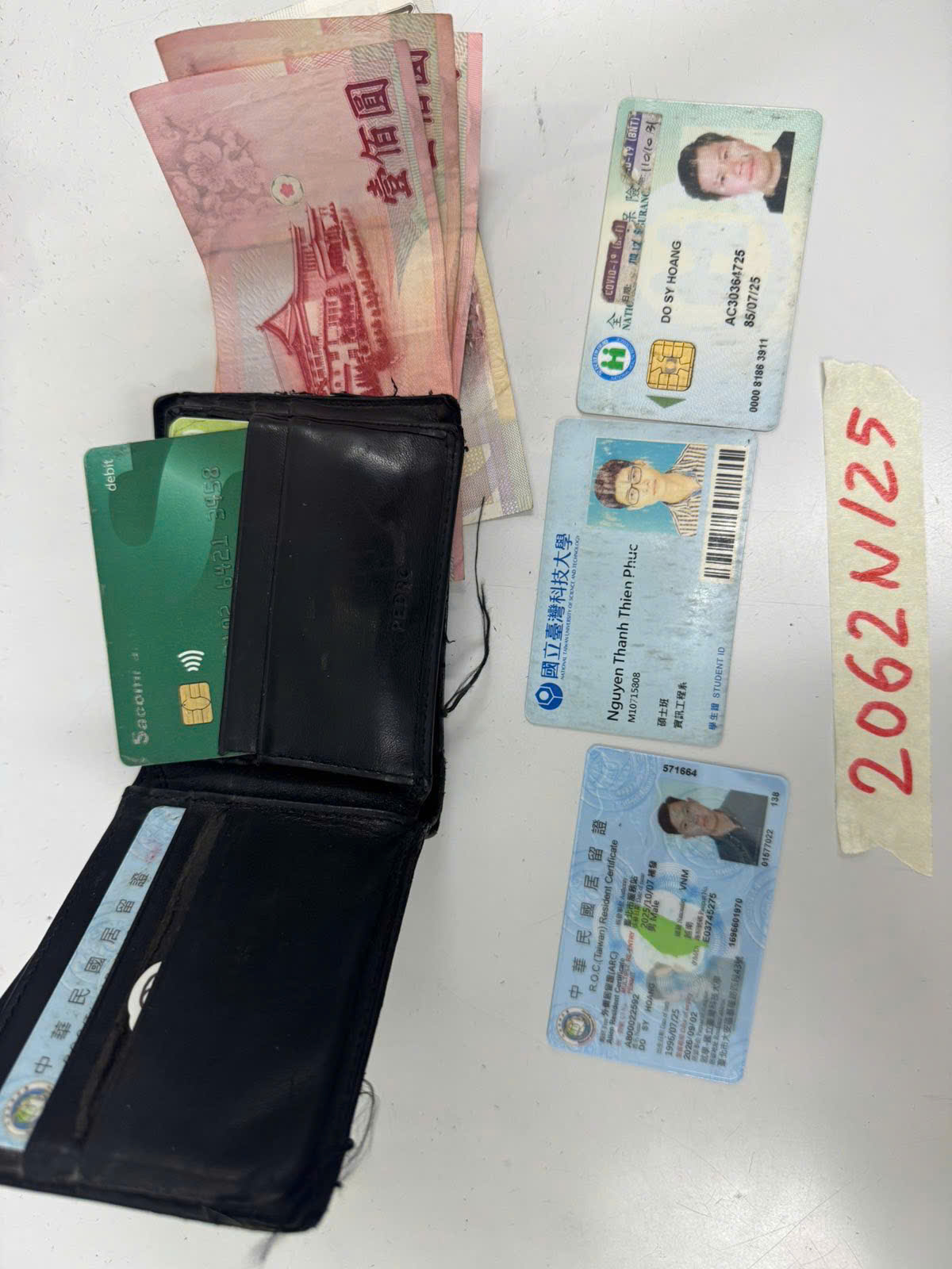 Ngày tiếp nhận: 24/11/2025 Mã hồ sơ: 2062N2025 Mô tả: 01 ví da nam có 800 tiền Đài loan, giấy tờ và thẻ ngân hàng. |
