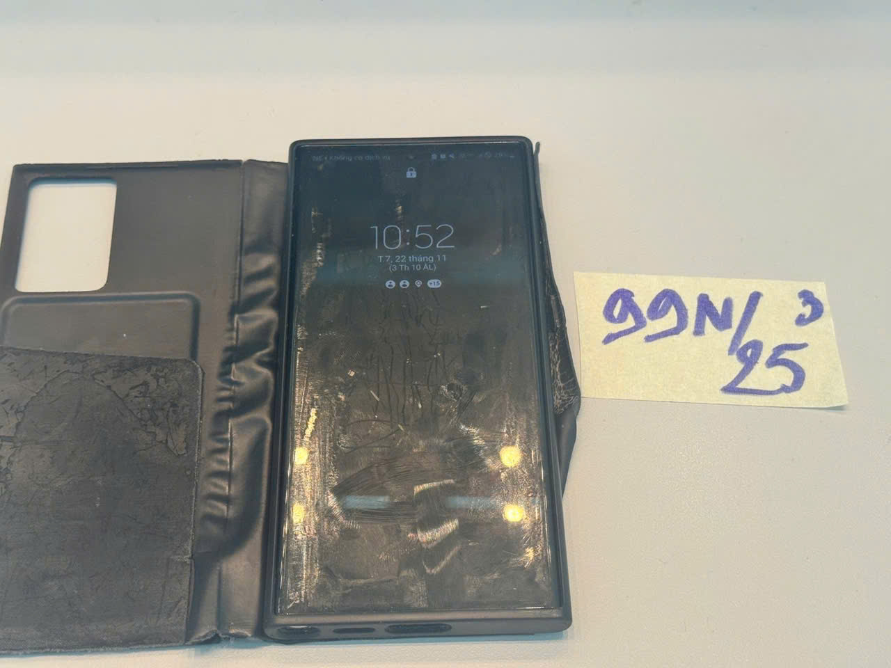 Ngày tiếp nhận: 22/11/2025 Mã hồ sơ: 99N2025 Mô tả: 01 điện thoại thông minh màu đen, mặt sau có chữ SAMSUNG, đã sử dụng. |