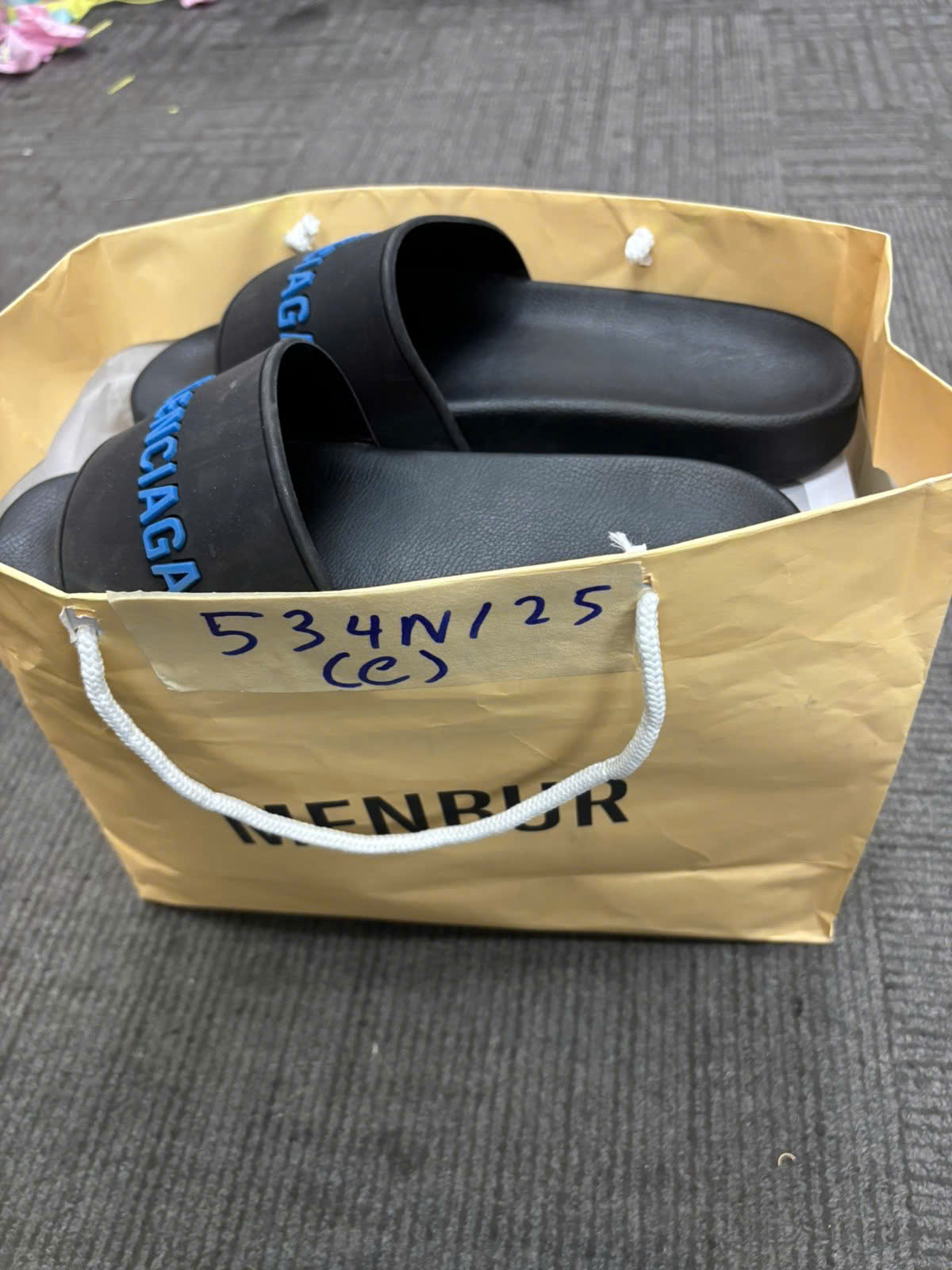 Ngày tiếp nhận: 22/03/2025 Mã hồ sơ: 534N2025C Mô tả: 01 đôi dép đen chữ BALENCIAGA, 01 máy làm nail PISON. |