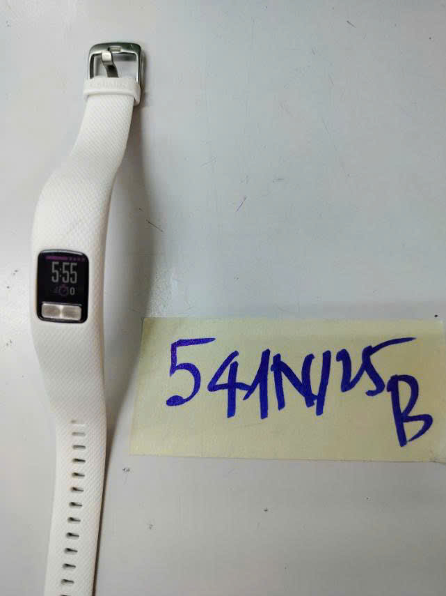Ngày tiếp nhận: 24/03/2025 Mã hồ sơ: 541N2025A Mô tả: 01 đồng hồ màu trắng có chữ "Garmin", dây cao su trắng. |