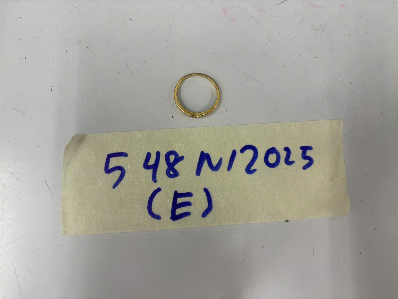 Ngày tiếp nhận: 25/03/2025 Mã hồ sơ: 548N2025E Mô tả: 01 nhẫn kim loại màu vàng, trên nhẫn có 01 hạt đá màu trắng. |