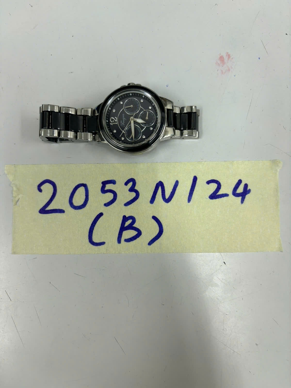 Ngày tiếp nhận: 29/11/2024 Mã hồ sơ: 2053N2024B Mô tả: 01 đồng hồ kim loại mặt tròn màu đen có chữ Fragra. |