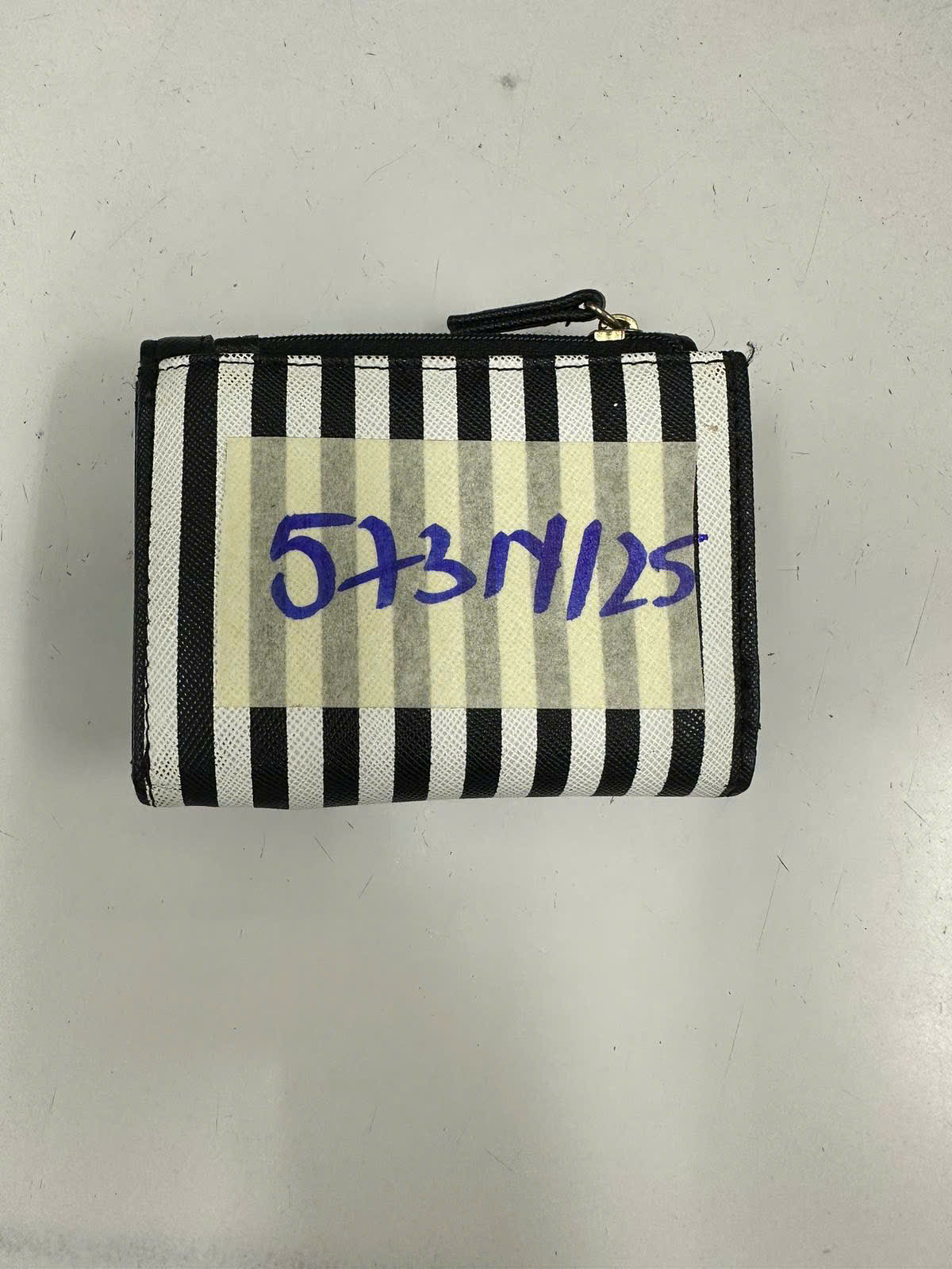 Ngày tiếp nhận: 29/03/2025 Mã hồ sơ: 573N2025 Mô tả: 01 ví da sọc trắng đen có: 02 thẻ Card visa tên KIMBERY B NEIZEBAND và 45 USD. |