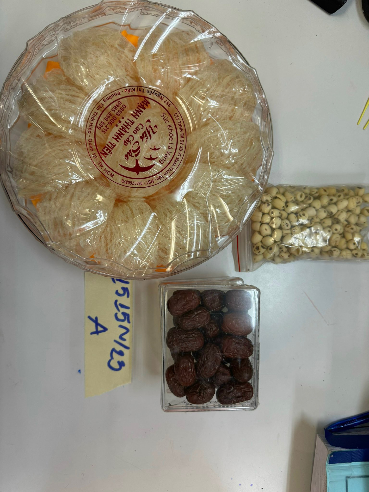 Ngày tiếp nhận: 31/10/2023 Mã hồ sơ: 1524N2023B Mô tả: 01 hộp giấy "BJBABUD" có 01 đôi giày trẻ em màu trắng có chữ "ARL", 01 đồng hồ dây kim loại màu vàng "SUNRISE", 01 tờ 100.000VNĐ, 01 tờ 20.000VNĐ, 01 tờ 10.000VNĐ. Vị trí: An ninh soi chiếu quốc nội |