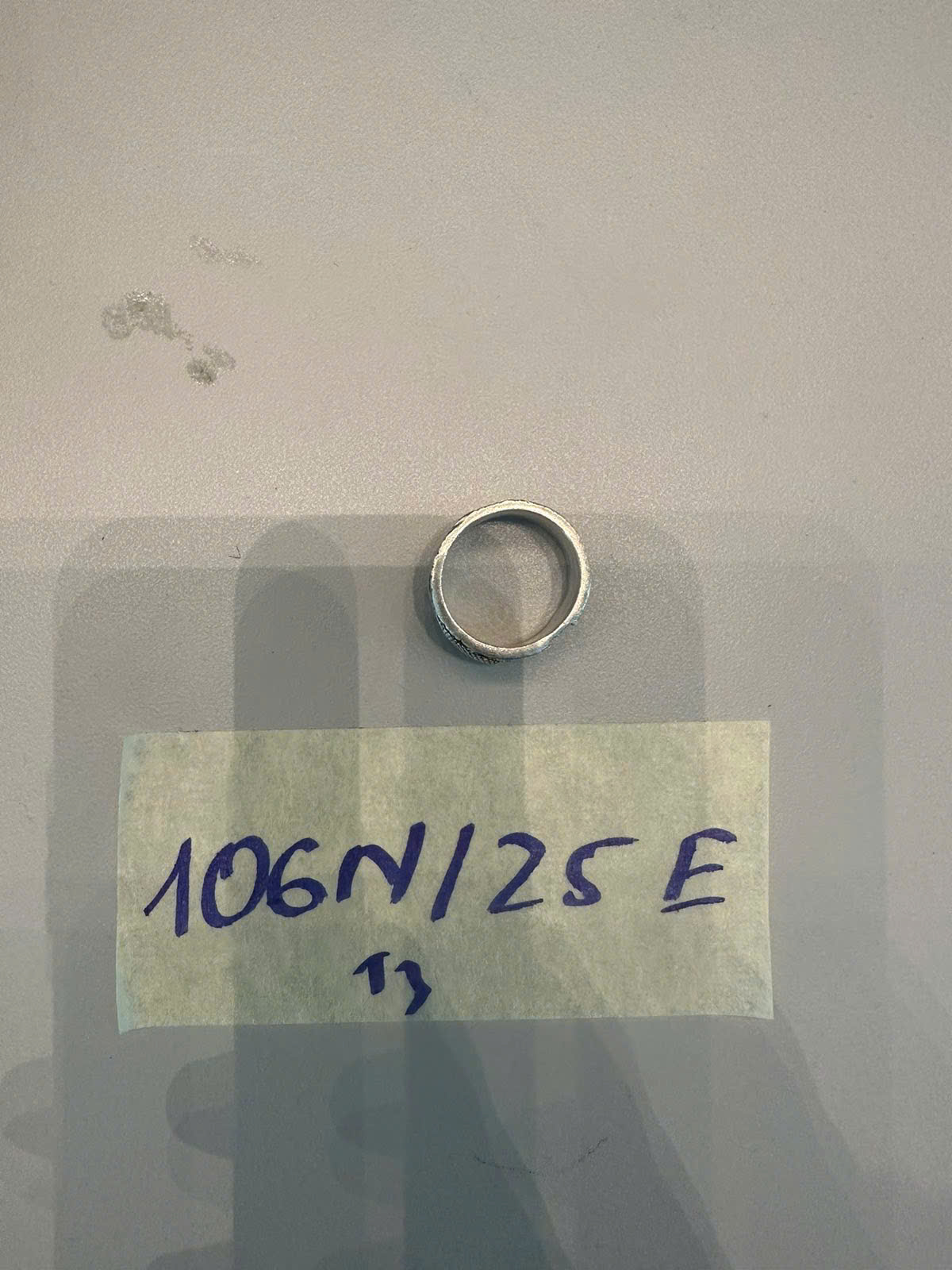 Ngày tiếp nhận: 29/11/2025 Mã hồ sơ: 106N2025I Mô tả: 01 nhẫn kim loại màu trắng. |