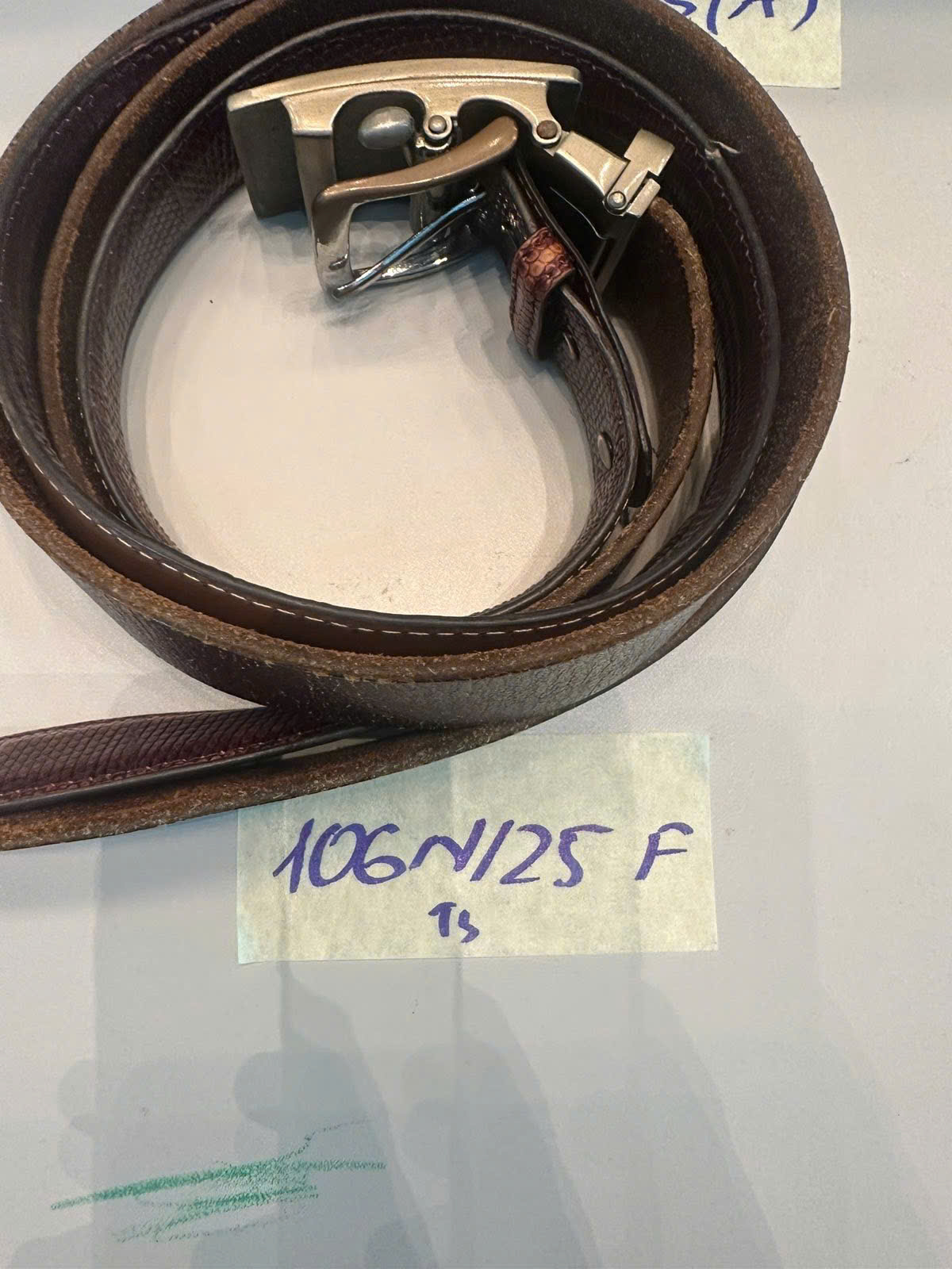 Ngày tiếp nhận: 29/11/2025 Mã hồ sơ: 106N2025F Mô tả: 02 dây lưng da màu nâu. |