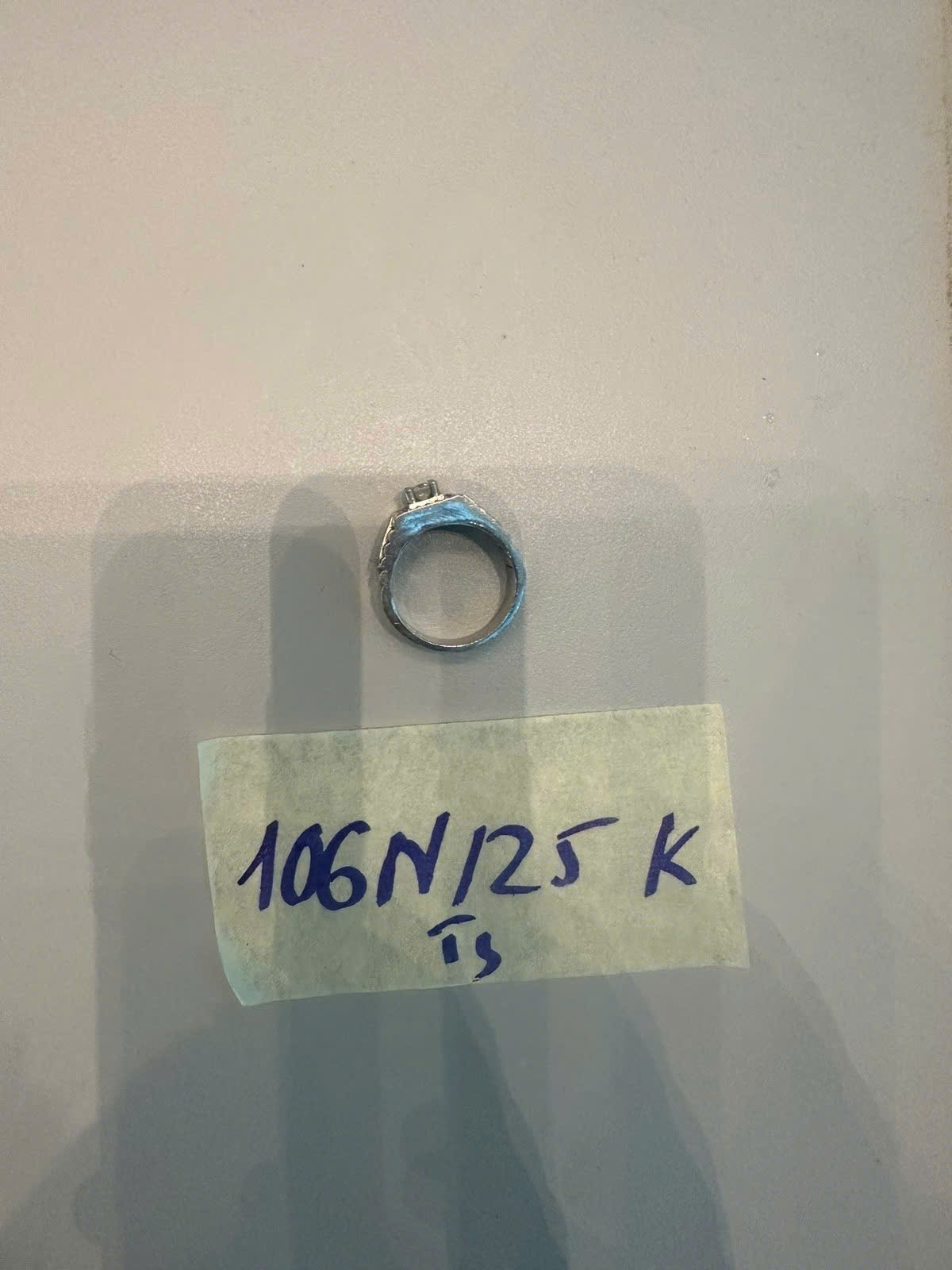 Ngày tiếp nhận: 29/11/2025 Mã hồ sơ: 106N2025K Mô tả: 01 nhẫn kim loại màu trắng có đính 1 đá. |