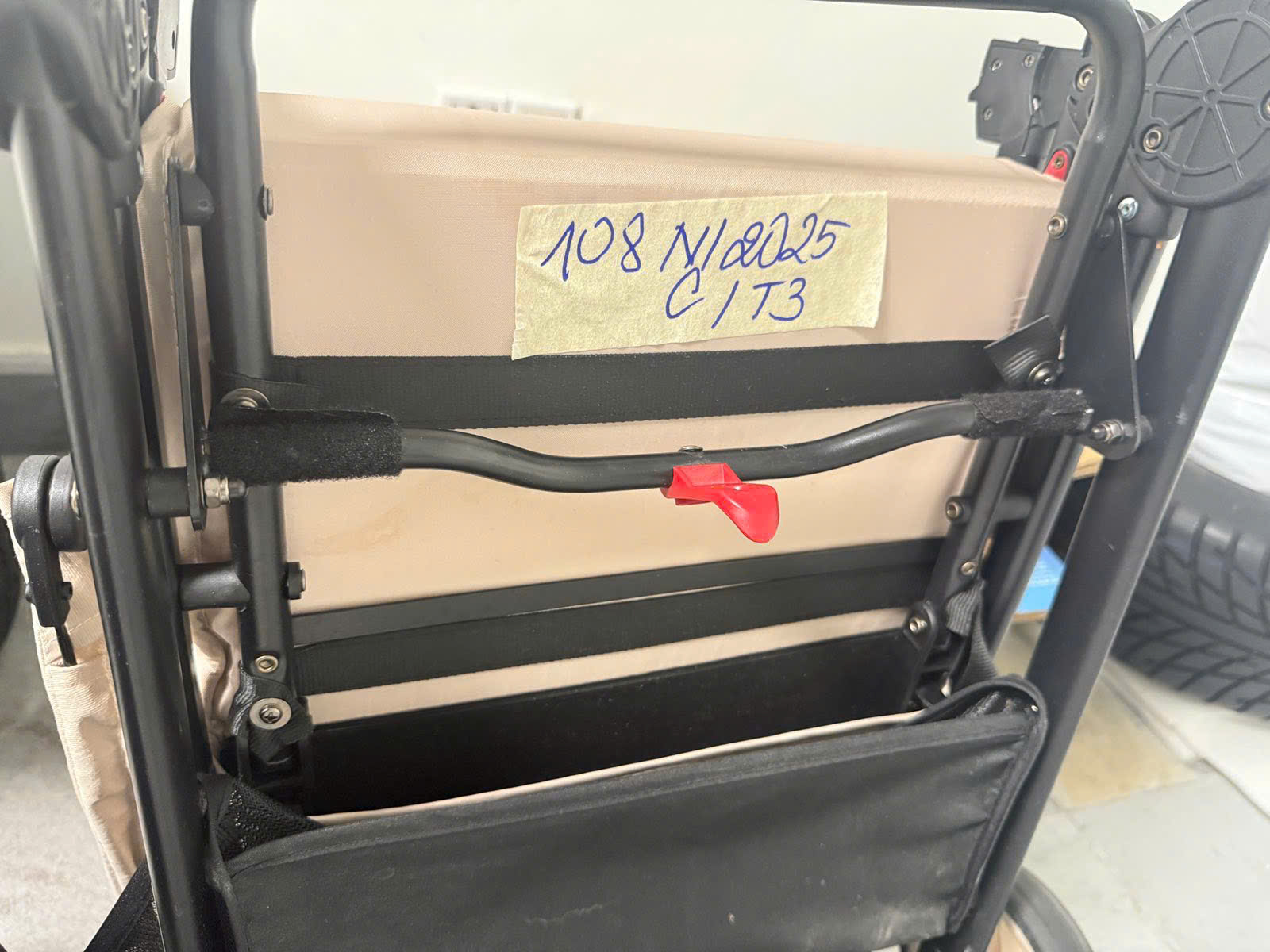 Ngày tiếp nhận: 29/11/2025 Mã hồ sơ: 108N2025C Mô tả: 01 xe nôi em bé, khung xe màu đen, vải màu be, 1 bánh xe đã bị gãy rời. |