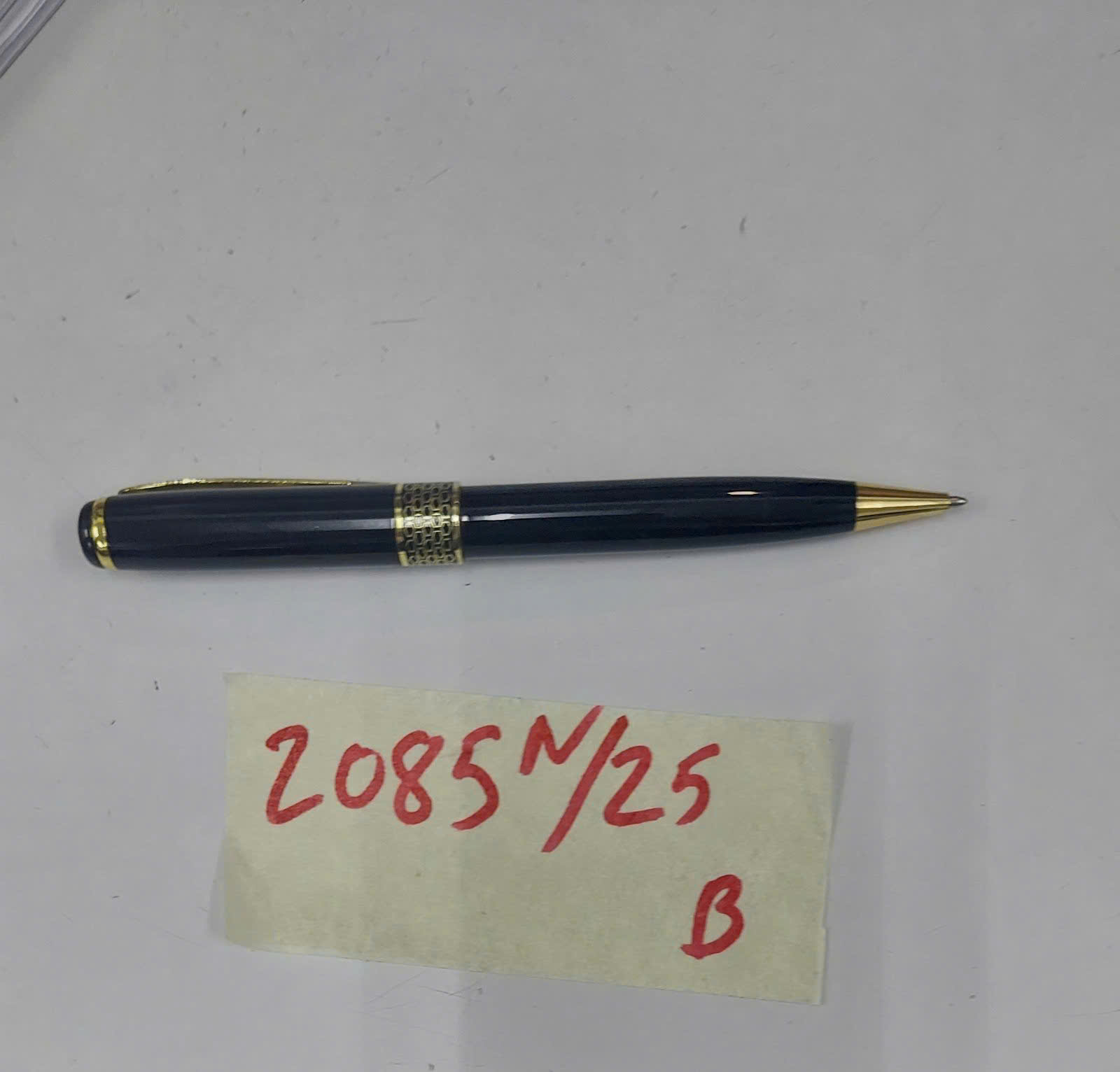 Ngày tiếp nhận: 30/11/2025 Mã hồ sơ: 2085N2025B Mô tả: 01 bút kim loại màu đen có chi tiết kim loại vàng đồng trên thân bút. |