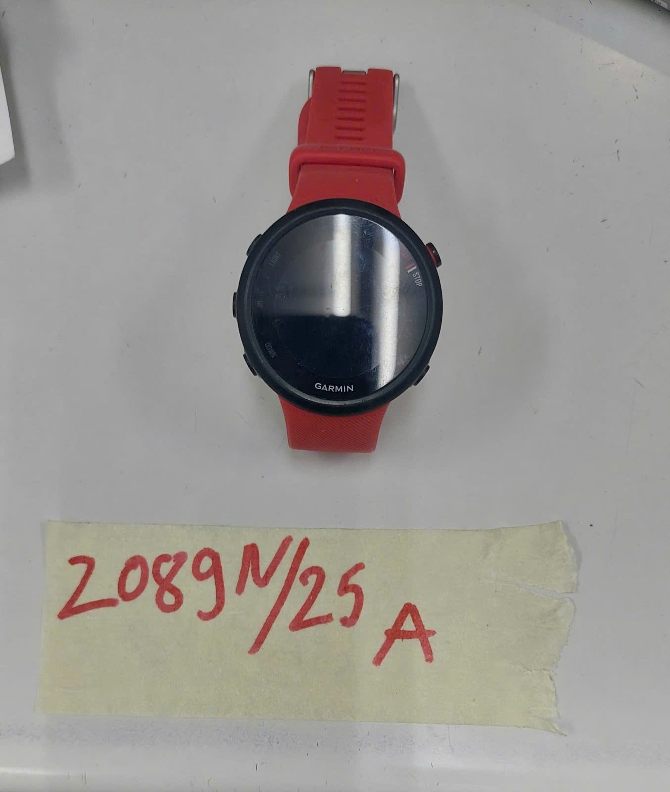 Ngày tiếp nhận: 30/11/2025 Mã hồ sơ: 2089N2025A Mô tả: 01 đồng hồ điện từ mật tròn màu đen hiệu GARMIN, mặt sau đồng hồ có dãy số 63U035969, dây đeo băng silicon màu cam. |