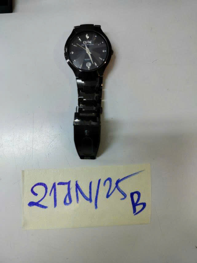 Ngày tiếp nhận: 30/01/2025 Mã hồ sơ: 217N2025B Mô tả: 01 đồng hồ đeo tay bằng kim loại màu đen, mặt có chữ OPK QUATZ, dây đeo bằng kim loại màu đen. |