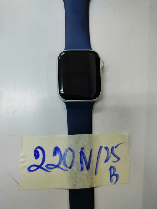 Ngày tiếp nhận: 30/01/2025 Mã hồ sơ: 220N2025B Mô tả: 01 đồng hồ logo "APPLE WATCH SE" dây nhựa màu xanh dương. |