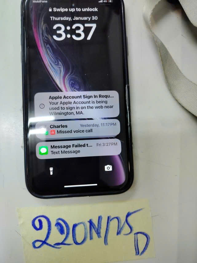 Ngày tiếp nhận: 30/01/2025 Mã hồ sơ: 220N2025D Mô tả: 01 điện thoại logo "APPLE IPHONE" màu đen và ốp nhựa cùng màu. |