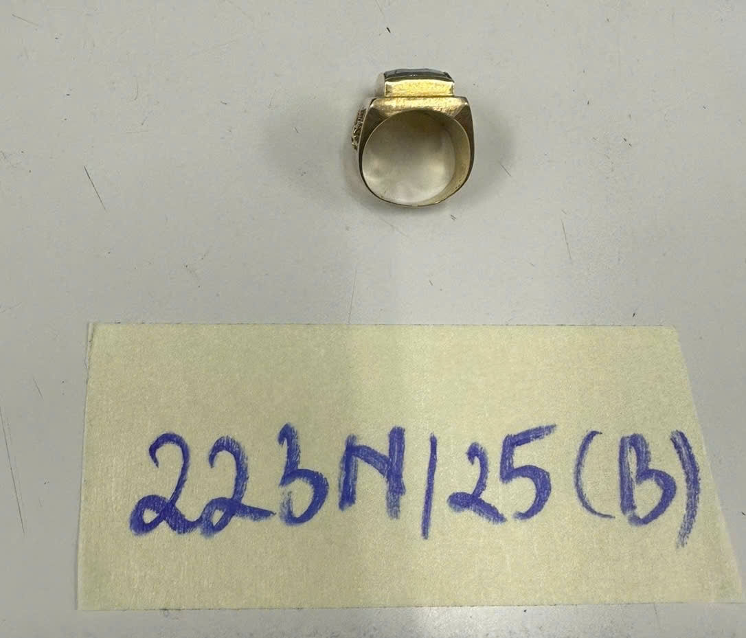 Ngày tiếp nhận: 30/01/2025 Mã hồ sơ: 223N2025B Mô tả: 01 nhẫn kim loại màu vàng có chữ "ND610". |