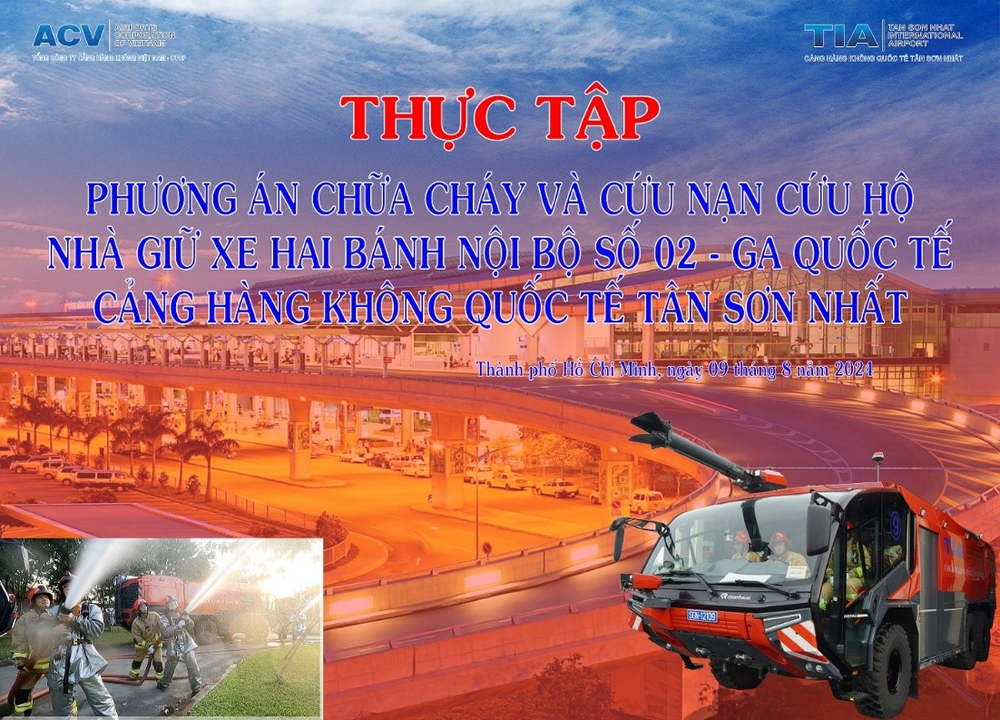 Sáng ngày 09/8/2024, Cảng HKQT Tân Sơn Nhất đã tổ chức chương trình Diễn tập cấp cơ sở về PCCC&CNCH năm 2024 tại khu vực Nhà xe hai bánh nội bộ, ga Quốc tế.