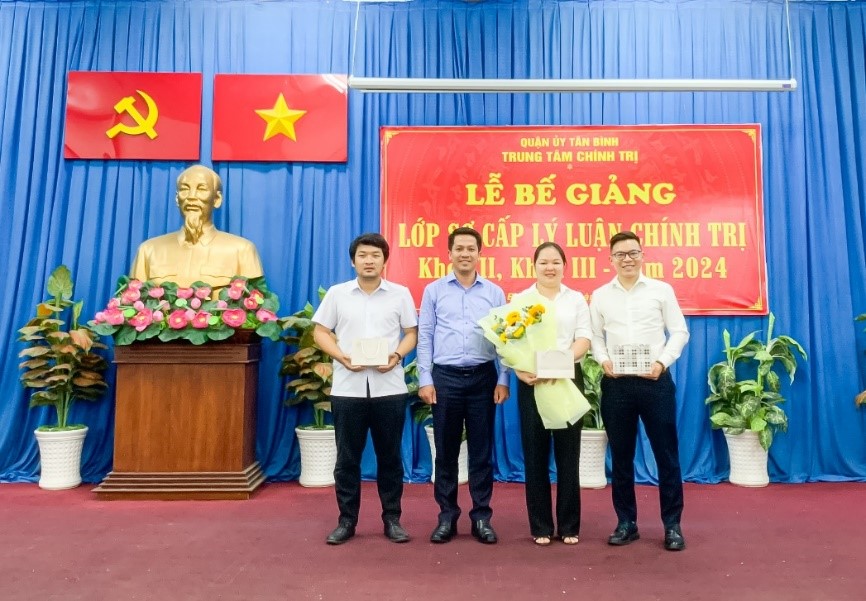Chiều ngày 23/5/2024, lễ tổng kết, bế giảng lớp Sơ cấp LLCT đã chính thức được tổ chức với sự tham gia của đồng chí Nguyễn Xuân Tiến, ủy viên BTV Quận ủy, Trưởng Ban Tuyên giáo Quận ủy, Giám đốc Trung tâm chính trị quận Tân Bình; Giảng viên Nguyễn Thị Thanh Huyền, chủ nhiệm lớp; các giảng viên tham gia giảng dạy cùng các học viên của Lớp Sơ cấp LLCT khóa 2 năm 2024.
