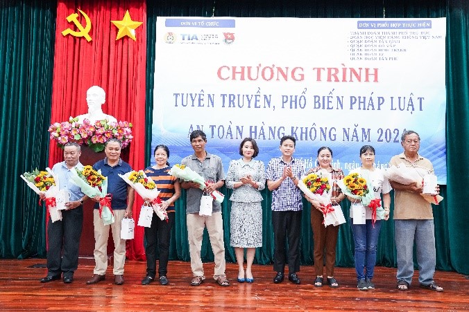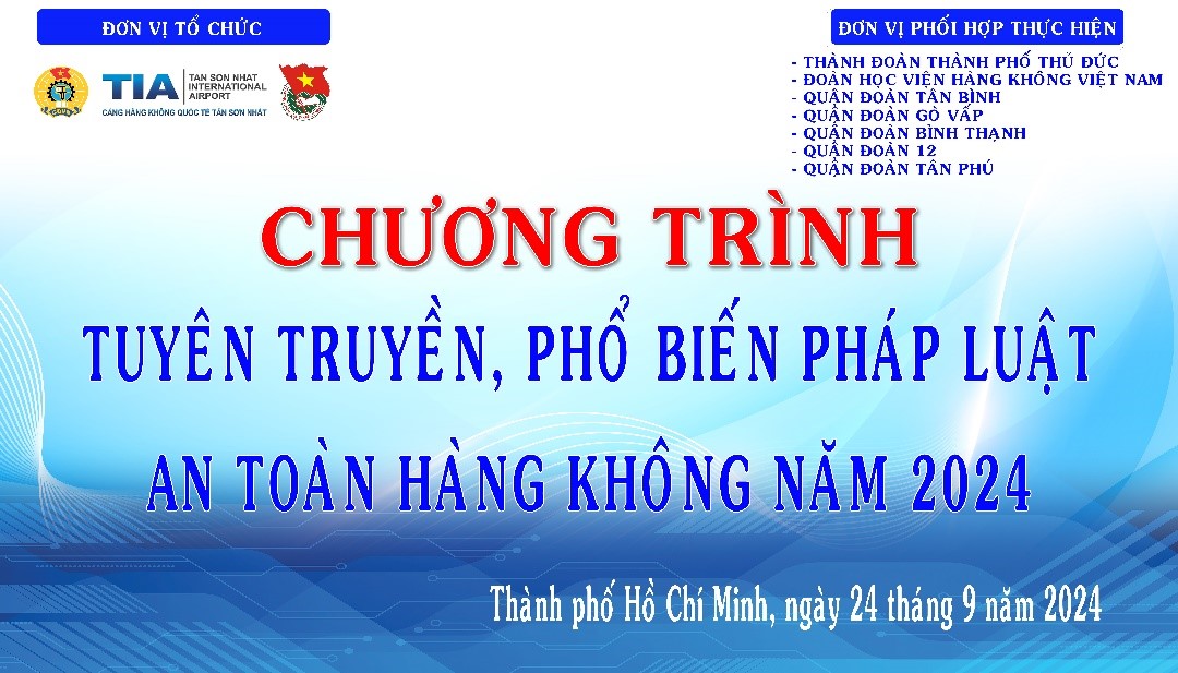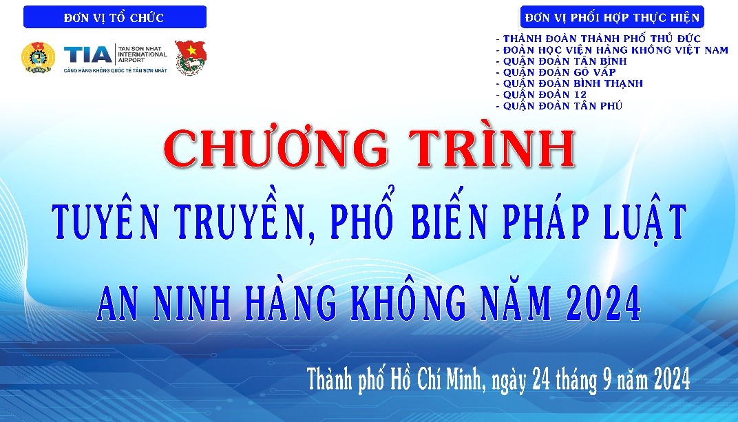 Ngoài ra, chương trình Tuyên truyền, phổ biến pháp luật về an ninh, an toàn hàng không năm 2024 còn có sự tham gia của đông đảo đoàn viên, thanh niên đến từ Học viện hàng không Việt Nam và các quận đoàn, thành đoàn trên địa bàn Thành phố như: quận Tân Bình, quận Gò Vấp, quận Bình Thạnh, Tp, Thủ Đức, Quận 12, quận Tân Phú. Đặc biệt hơn hết là sự góp mặt tham gia của hơn 35 hộ gia đình đang sinh sống tại các khu vực lân cận cảng hàng không, sân bay và nơi có đường cất, hạ cánh của tàu bay đi qua.