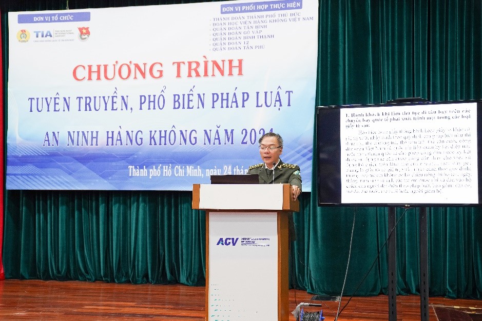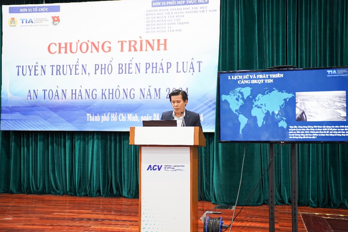 Chiều ngày 24/9, Cảng HKQT Tân Sơn Nhất đã tổ chức chương trình “Tuyên truyền, phổ biến pháp luật về an ninh, an toàn hàng không” năm 2024 tại tòa nhà Tổng công ty Cảng hàng không Việt Nam – CTCP (ACV).