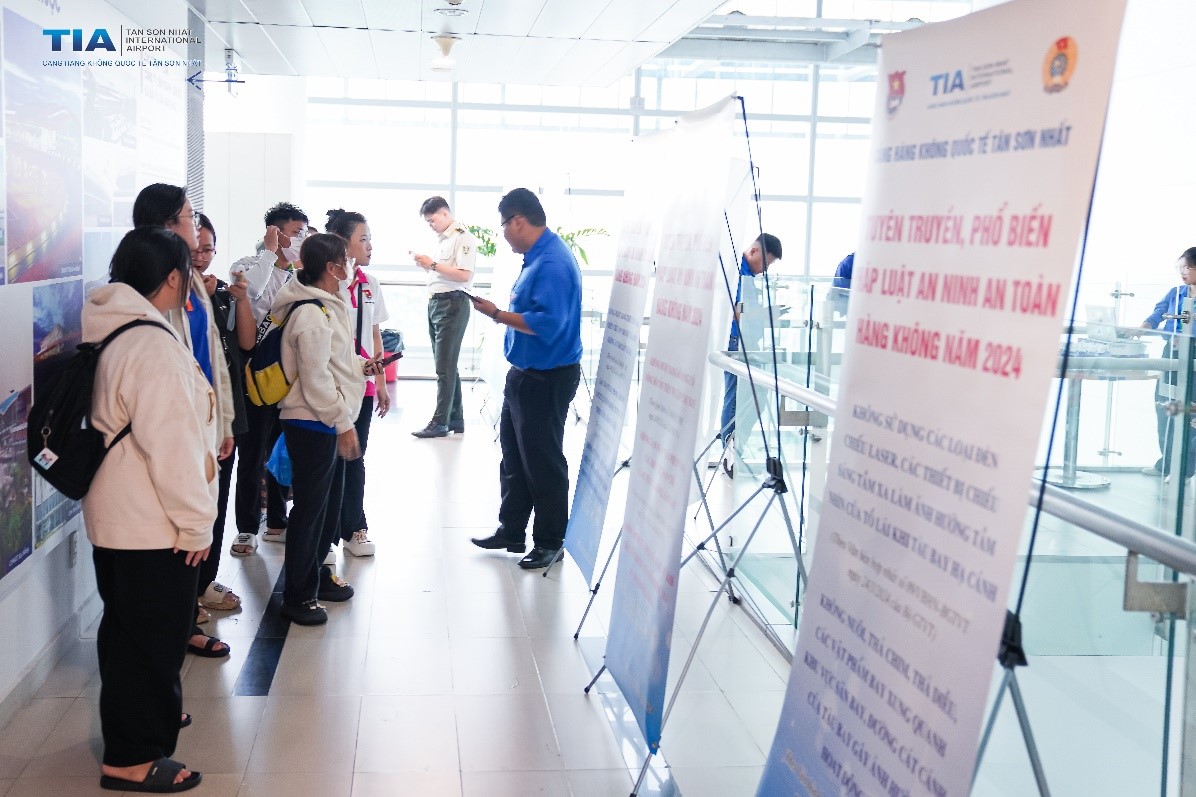 Ngoài tuyên truyền trực tiếp bằng các báo cáo chuyên đề, Ban Chấp hành Đoàn Thanh niên Cảng đã triển khai tuyên truyền bằng hình thức trực quan thông qua các standee được bố trí tại các khu vực hành lang và cổng/cửa. Bố trí cơ số đoàn viên thuộc Trung tâm ANHK Tân Sơn Nhất phụ trách giám sát và giải đáp các thông tin khi có thắc mắc.