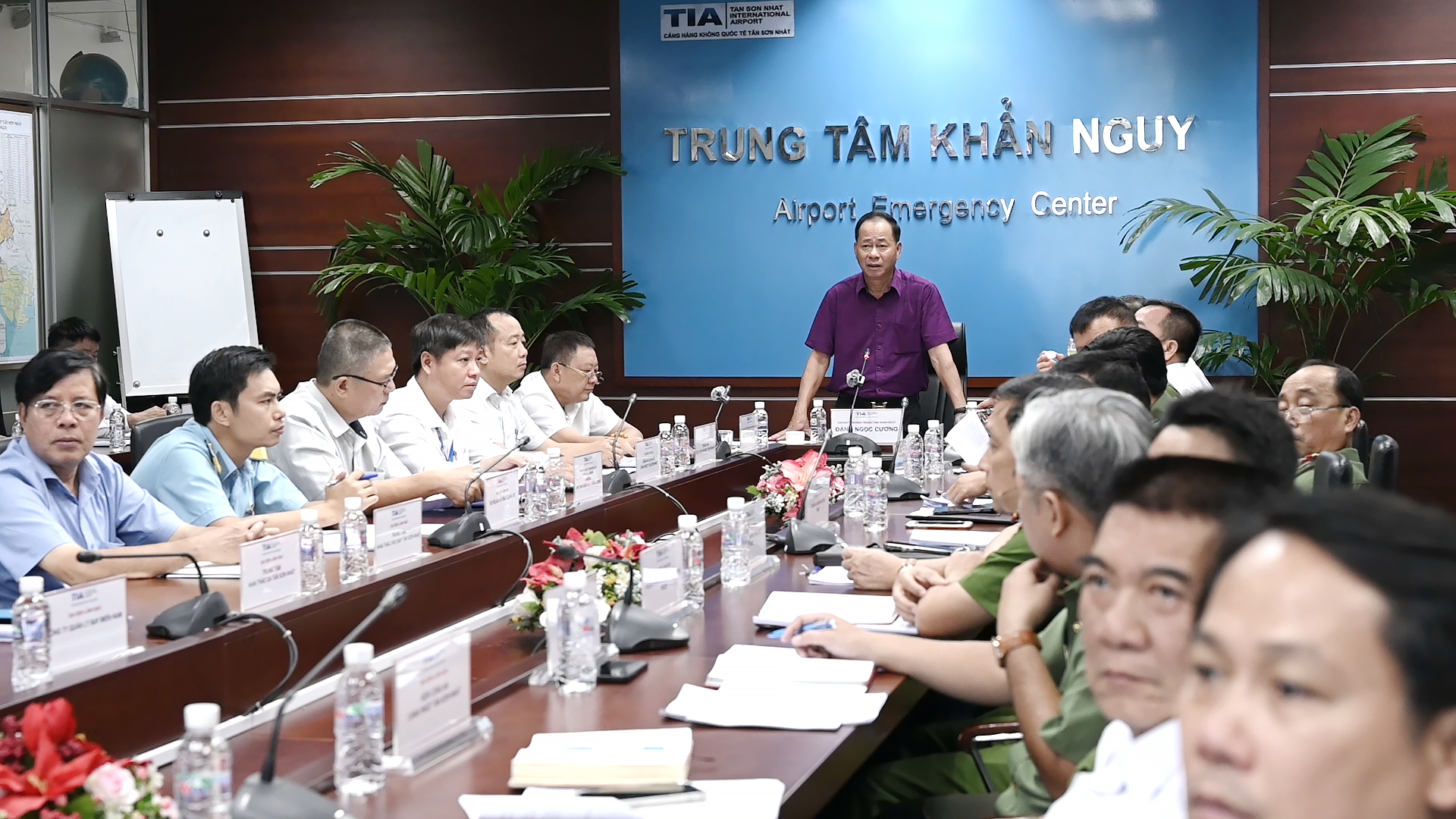 Tình huống giả định: Chỉ đạo của GĐ Cảng HKQT Tân Sơn Nhất kích hoạt Trung tâm khẩn nguy và triển khai phương án xử lý tình huống “Gây rối trật tự tại khu vực công cộng ga đến quốc tế Cảng HKQT Tân Sơn Nhất”.