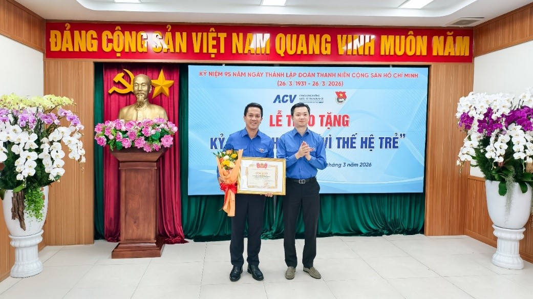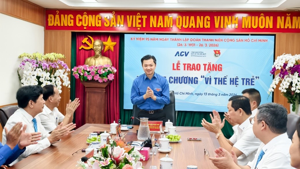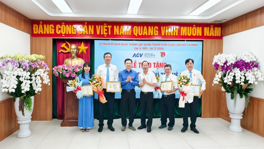 Sáng ngày 13/03/2026, Đoàn TNCS Hồ Chí Minh đã trao tặng Kỷ niệm chương “Vì thế hệ trẻ”; trao khen thưởng cho tập thể và cá nhân có thành tích xuất sắc trong công tác Đoàn và phong trào thanh niên tại Cảng HKQT Tân Sơn Nhất nhân dịp Tháng Thanh niên – Kỷ niệm 95 năm Ngày Thành lập Đoàn Thanh niên Cộng sản Hồ Chí Minh (26/03/1931 – 26/03/2026).