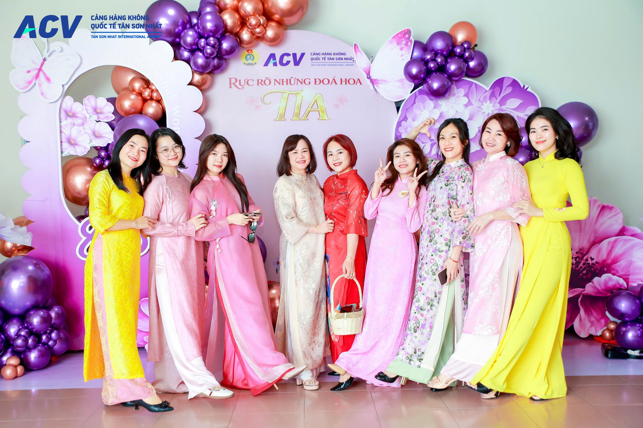 Phụ nữ Cảng HKQT Tân Sơn Nhất đằm thắm trong những bộ áo dài như điểm tô thêm cho nét đẹp rạng rỡ của người Phụ nữ Việt Nam trong sắc xuân tươi mới.