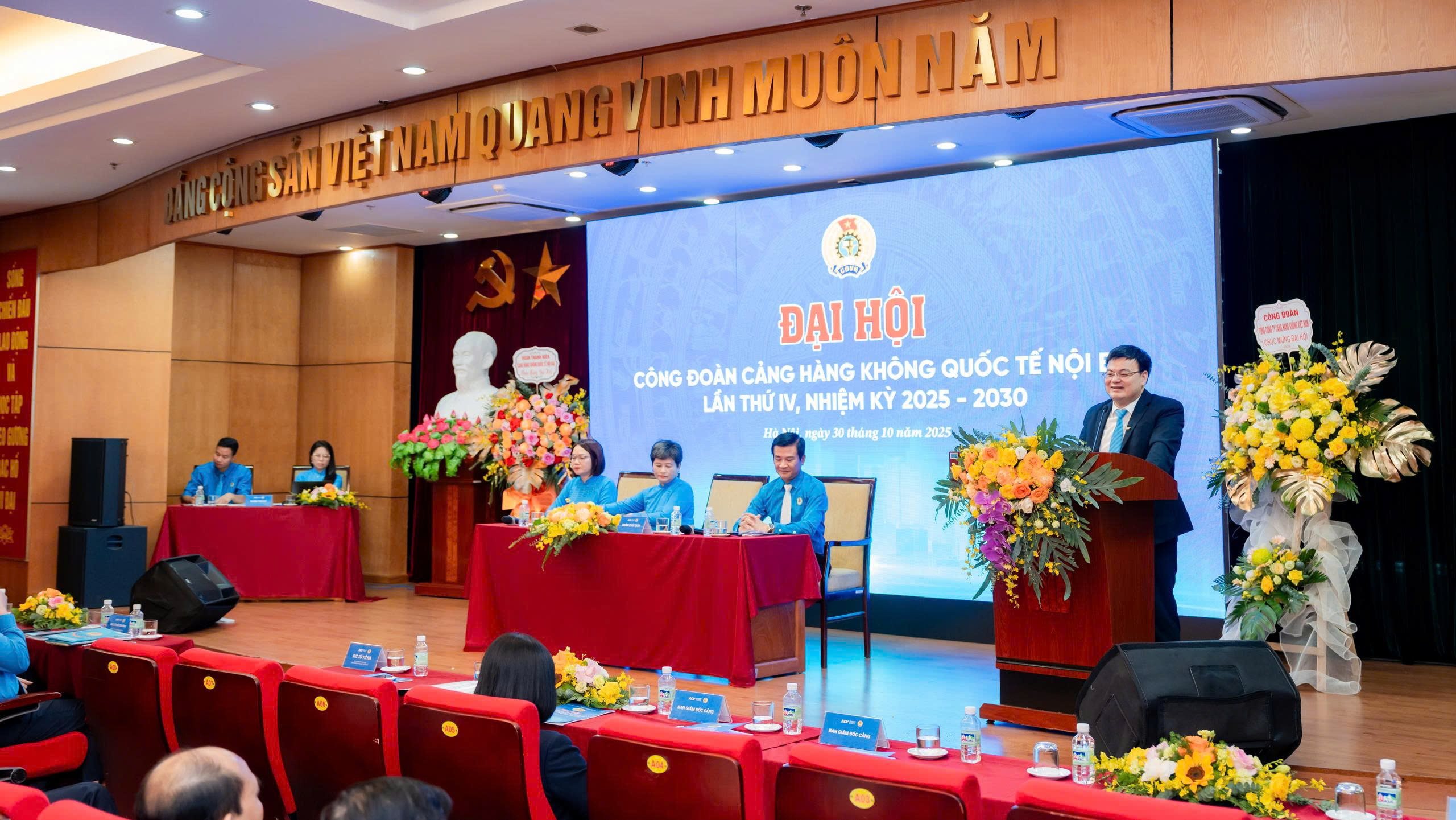 Ngày 30/10/2025, Công đoàn Cảng hàng không quốc tế (HKQT) Nội Bài đã tổ chức Đại hội đại biểu lần thứ IV, nhiệm kỳ 2025 - 2030. Sự kiện là đợt sinh hoạt chính trị quan trọng, thể hiện ý chí, nguyện vọng và sức mạnh đoàn kết của toàn thể đoàn viên, người lao động tại Cảng.